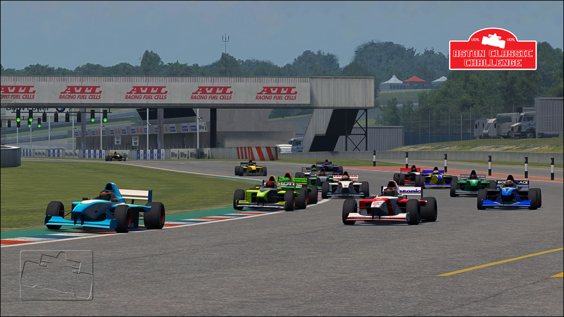 Aston probably is one of the most known environments of LFS S2 content as it features configurations apropriate for all cars,while the VERL car Formula V8 feels right in all of them. So does the 2nd shortest configuration codenamed "Club" - a circuit just over 3 kilometers in lenght,featuring long front stretch,a hairpin,followed by tricky S-turn,while circuit's final section has a difficult curved braking zone for final turn,where the inner front tyre will lose the perfect round chape very quickly if driver is not careful enough - finishing 65 laps on same set of tyres might be a tricky task.