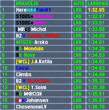 With this RTFR XL racing is over for this year,yearly standings will be posted at nearest possibility. The winner of this race can submit his choice for the 49th RTFR XL (scheduled for 26th january) until 1st tuesday of the next year! Next tuesday also the year long run for positions in the standings for normal RTFR will be finished,as the 26th race of the year will be good old just for fun event - combo and more details will be posted this weekend.