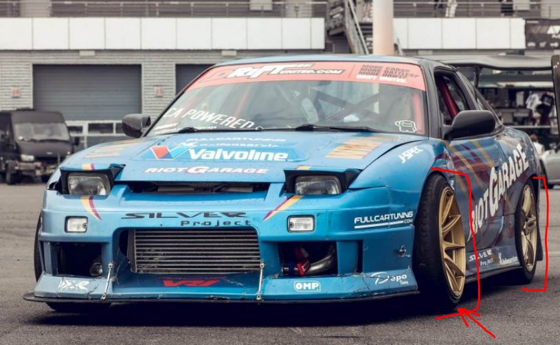 3.(XRR Drift Mode needs wider front track) if you look at cars with wise fab, angle kits, drift competition cars, they all have wider front tracks with more camber than rear. Now that we have 60 degrees lock it would feel right with wider front track and more front camber so it helps with parallel steer and front tire contact during high speed and massive drift angle (picture below) BY THE WAY THE FRONT TRACK DONT NEED TO POKE OUT ON XRR DRIFT CONFIGURATION