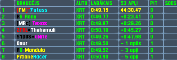 IMPORTANT! Due very specific pitlane entry,using left turn light or emergency lights are mandatory when entering pitlane - at latest lights must be turned on right after exiting last 180° turn!
