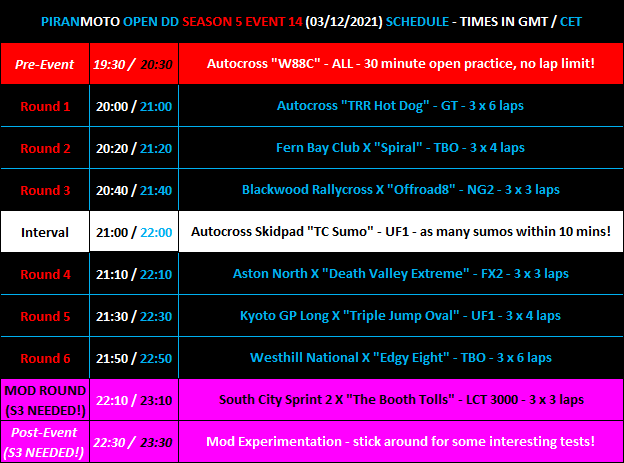 *Don't worry if you're on an S2 licence - we'll leave the mod round until last and leave the mods disabled until then, so you can still join the server and race a full 6 of the 7 rounds!*