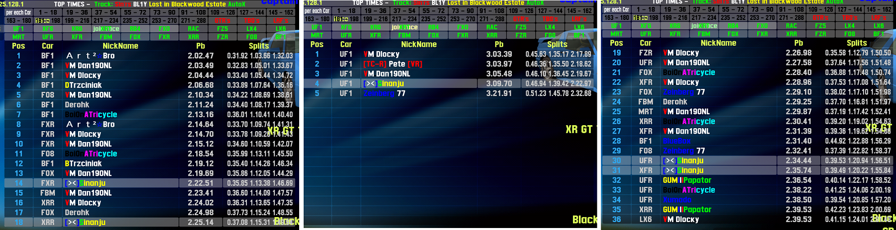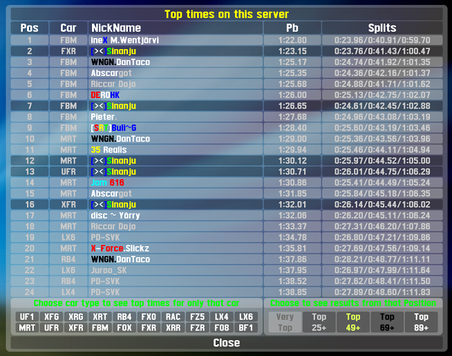 For instance, press 'UF1' in Laptime table, and you got only the top UF1 times.