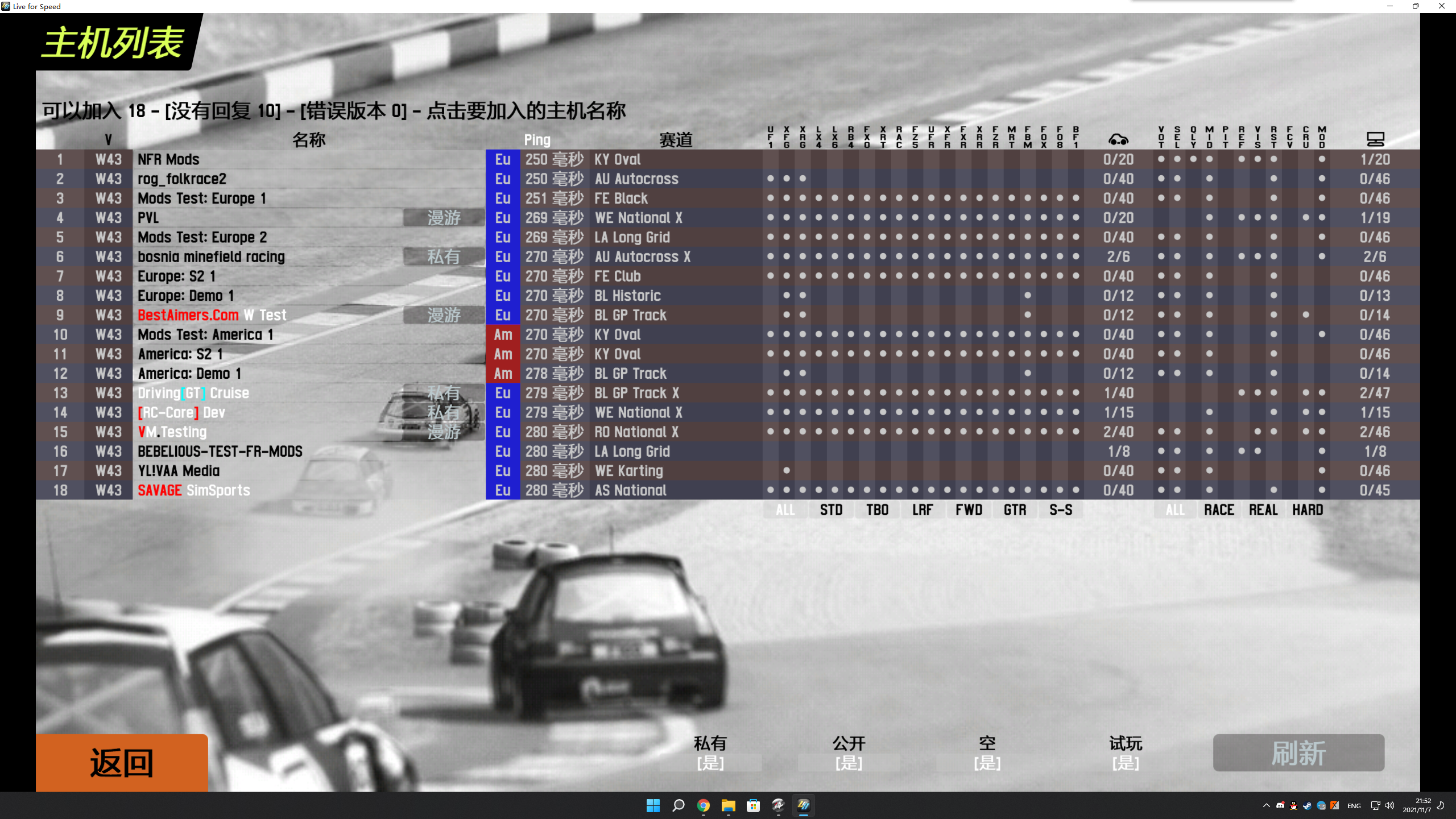 It's 12:00 in the noon so I have another result. Not very optimstic. Usually 0-4 server randomly shows in the list with 120-200ms+ and may have few chance of lost connection, not 100% okay for racing. After 13:00 it seems stable with few 500ms jumps.