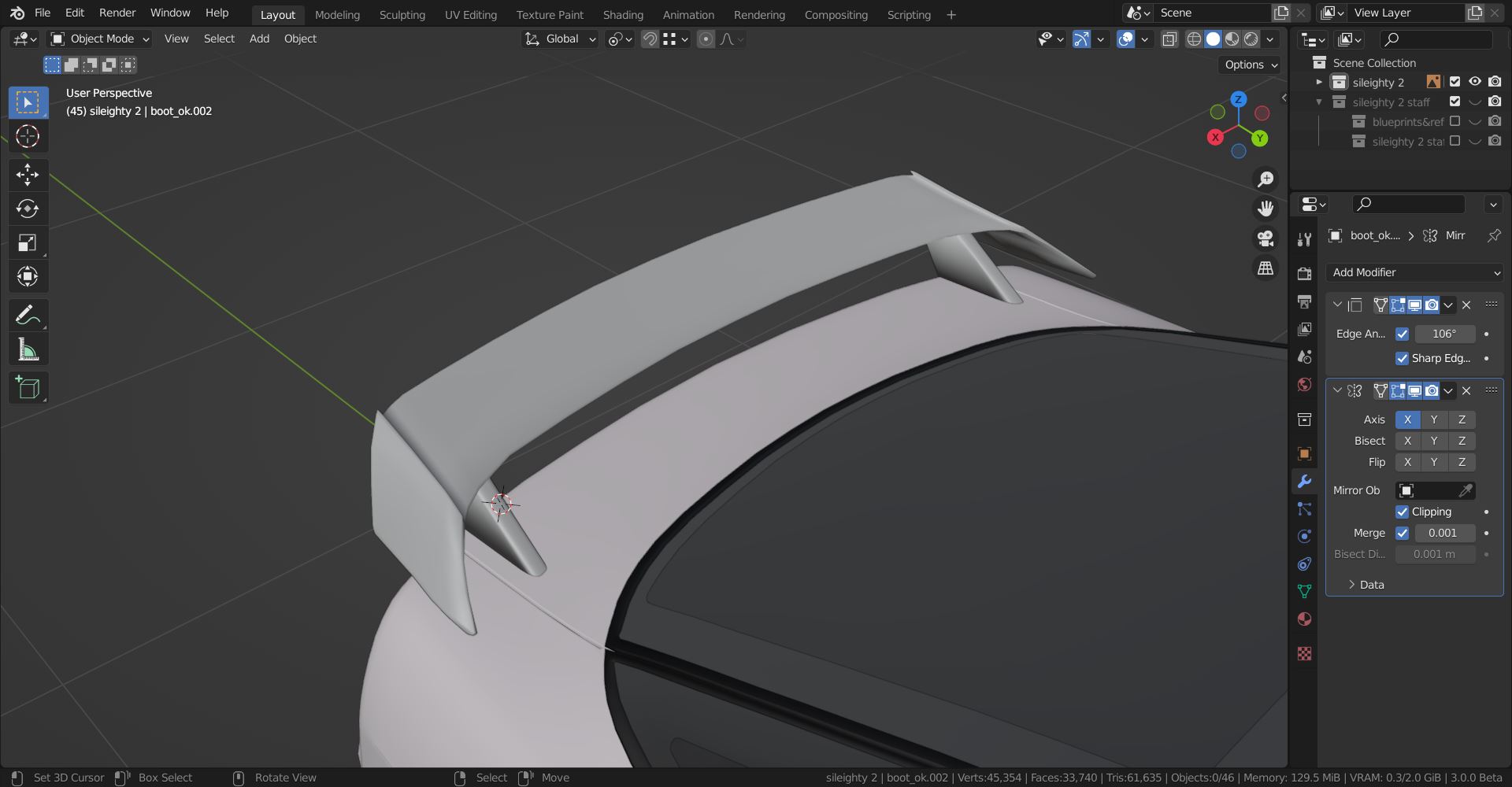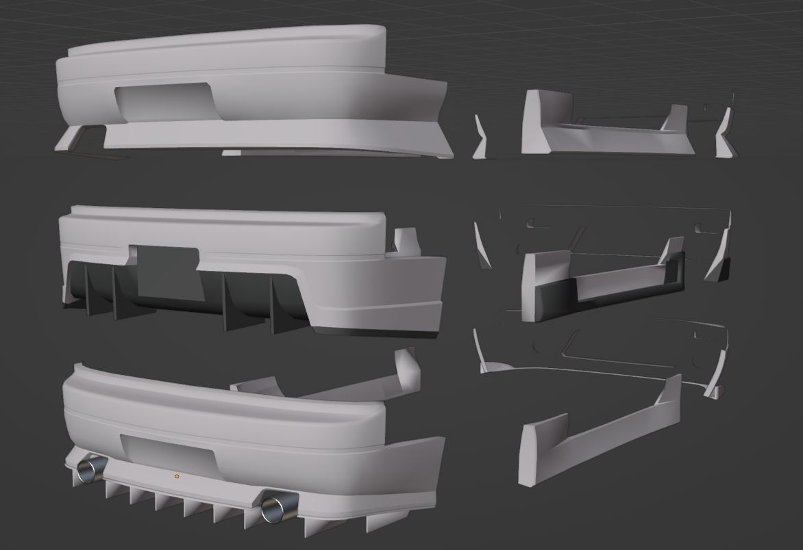 Rebild the stock body: add stock OEM bumper, spoiler changed to more stock OEM looking, rear bumper changed a bit too.