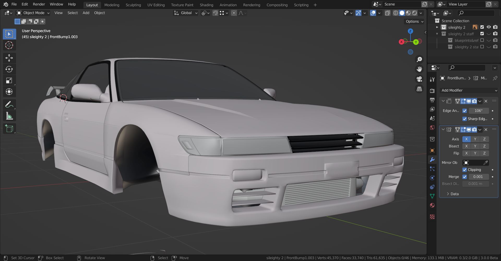 Rebild the stock body: add stock OEM bumper, spoiler changed to more stock OEM looking, rear bumper changed a bit too.