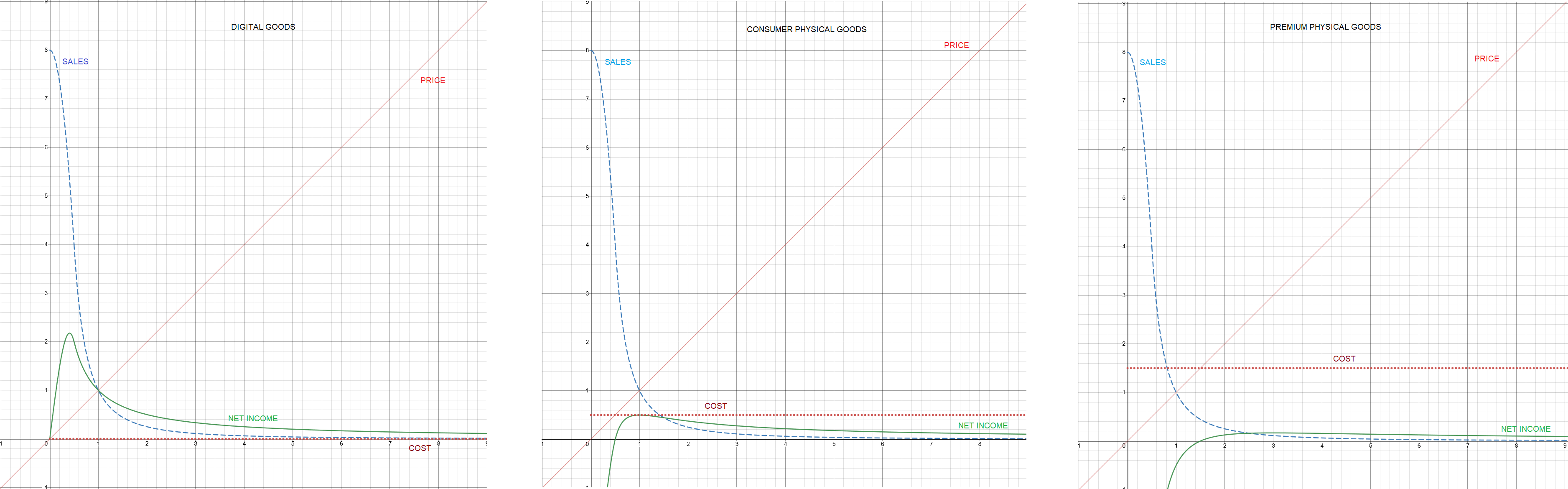 This is why I specifically mentioned that this effect is unique to digital goods, because producing a digital copy costs nothing, whereas for a physical copy you have a minimum sale price that equals to production costs, and to make a profit you have to price it even higher.