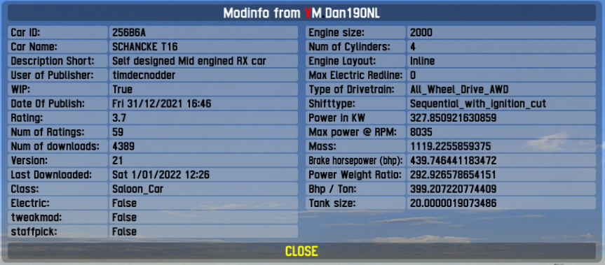 {"data":{"id":"1AF20E","name":"TOMMY28","descriptionShort":"Tommy 28 - A vintage racing car from 1920'","description":"feel the vintage racing with big moustache and reckless drivers\r\ndo not search extrem grip, do not search evil power, but be extremely sharp in your track feeling with this 1928 Tommy racing car.\r\n\r\n2 configs :\r\n- Sport : stricly minimum to race\r\n- Sport Lux : tiny windscreen and lights (very usefull when LFS release the night races)\r\n\r\nMartin18 has work on the 8 inline engine !\r\nFlame CZE give me authorisation for his Hadraplan's steering wheel, clocks and mirrors (modified)\r\nNene87 help me on editor and blender at the beginning\r\n\r\nClocks are old but it works.\r\nsee the motor behind events ;)\r\nlook at the hand-polishing chromes !\r\n2 versions\r\n\r\nantiroll bar are finally added to maintain fun to drive (it was very slippery without)\r\n\r\n- skins with racing numbers and vintage look\r\n- suspensions 3d anim on the rear\r\n- lean driver animation","userId":79595,"userName":"Tomfuel","wip":true,"publishedAt":1640879379,"numDownloads":3803,"curUsage":0,"rating":4.34,"numRatings":43,"staffPick":false,"tweakMod":false,"version":5,"lastDownloadedAt":1640881808,"class":2,"ev":false,"coverUrl":"https:\/\/www.lfs.net\/attachment\/276798","screenshotUrls":["https:\/\/www.lfs.net\/attachment\/274160","https:\/\/www.lfs.net\/attachment\/274161","https:\/\/www.lfs.net\/attachment\/274162","https:\/\/www.lfs.net\/attachment\/274163","https:\/\/www.lfs.net\/attachment\/274164","https:\/\/www.lfs.net\/attachment\/274165","https:\/\/www.lfs.net\/attachment\/274166","https:\/\/www.lfs.net\/attachment\/274167"],"vehicle":{"iceCc":5237,"iceNumCylinders":8,"iceLayout":0,"evRedLine":0,"drive":1,"shiftType":1,"power":81.76211547851562,"maxPowerRpm":3586,"torque":233.3720703125,"maxTorqueRpm":1687,"mass":889.9309692382812,"bhp":109.66752549133301,"powerWeightRatio":91.87467152480184,"bhpTon":125.20896003186276,"fuelTankSize":39.000003814697266}}}