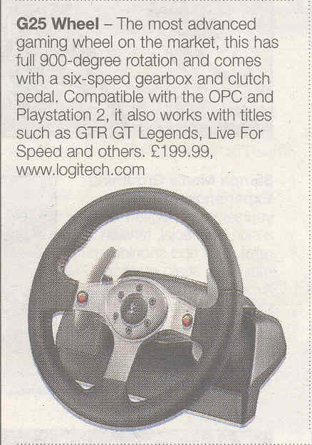 Haha, the Straits Times (Singapore) reviewed the Logitech G25 wheel and in it they mentioned "The G25 works best with great racing titles like the Gran Turismo series and Live For Speed."