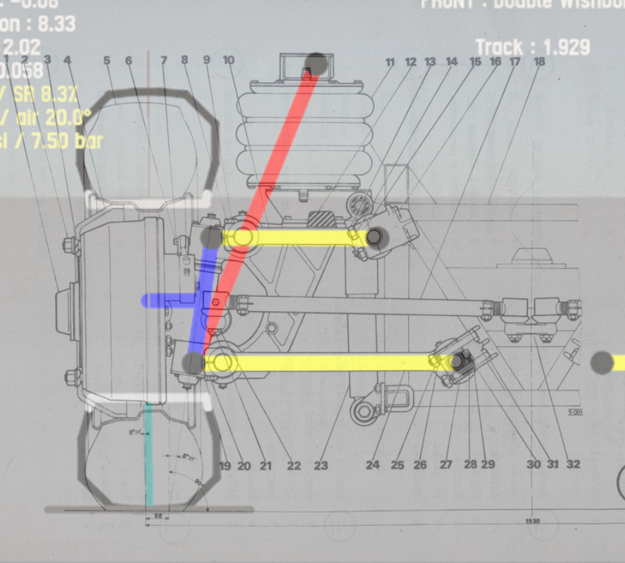 Regarding the front supension - one of the original authors sent me a great reference photo so I could align it in the editor as close as possible.