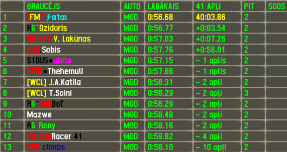 SPECIAL RULING for this round: Cars during pitstop may not move - as long as pitwork is still active,car's speed must be 0 km/h (mph)! This means you may accelerate only when on screen is shown "Pitstop finished". It is advised to apply brakes or emergency brake during pitstop to avoid car movement.