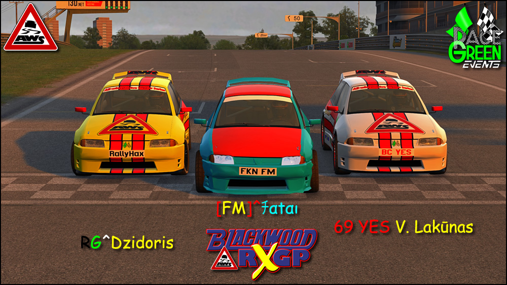 Blackwood RXGP is basically the round that started the whole idea of AWS - many years ago we found out the FXR equipped only with slicks is still faster than any other car on Blackwood's RX track and it requires some special skill to be fast,as the grooveless tyres on dirt sections had not much grip. During the years this round was away from schedule only for one season,when FXR rallycross was transfered to Fern Bay's RX track - that was considered as a mistake and AWS kept running FXR only in Blackwood since then. Last year LFS devs introduced test patch allowing dirt tyres for FXR,but unfortunatelly this patch was released too late to be used in AWS,so this year should had been first when FXR would run the "right" tyres. Well,another new patch made things different - there was a chance to add a new car with something new and this car took over from the good old FXR the honor of being run in Blackwood RXGP! The electrically powered XFE has slightly more power and better power/torque curve,which transfers also on running pace - the XFE is faster than the old car! But as in real world,the electrically powered cars still have one drawback - it's energy storage is relativelly smaller than the one for combustion engines,meaning drivers will need 2 or even 3 pitstops.