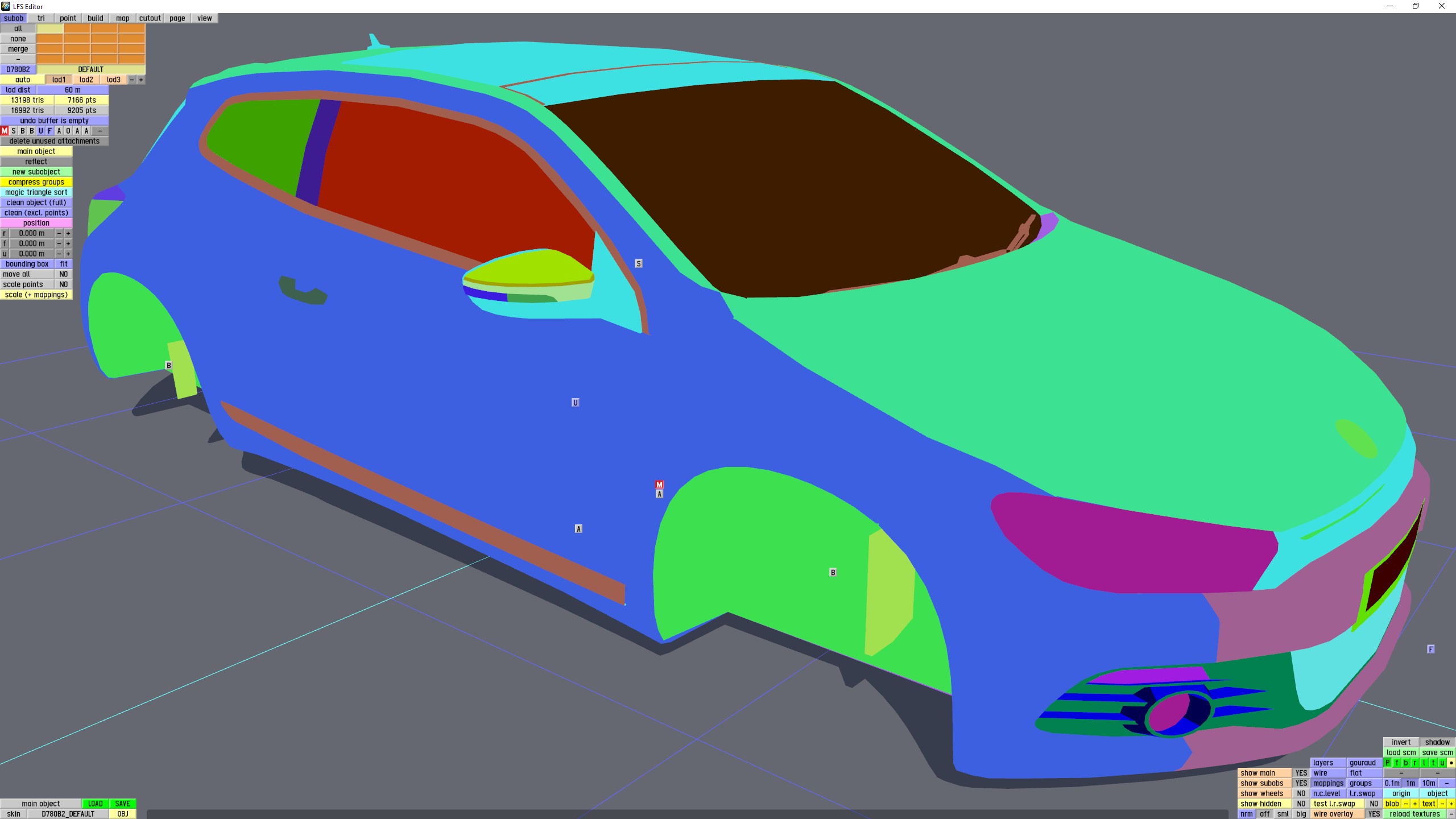 Fast forward to 2022 - vehicle mods are now officially supported. Despite a catastrophic failure of my harddrive in 2021, I was able to find the mod on my old decommissioned HDD and I've started the resurrection of the project. This time with the proper tools I was able to create a 1:1 copy of the car you can see in the LFS Skin Viewer. I had to redo all the mappings (250+):