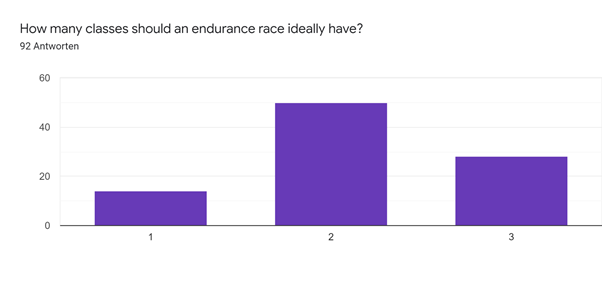 54% think a two-class structure should be in place for endurance racing, with the single-class races only gathering 15% of the votes. The remaining participants wish to have three classes.