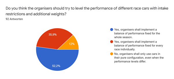 For the balance of performance, the majority wants to have predictable and stable BOP regulations throughout the season. Only 12% wish to drive with the pure cars even if it creates an imbalance between the cars in the series or the race.