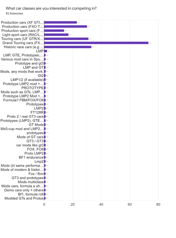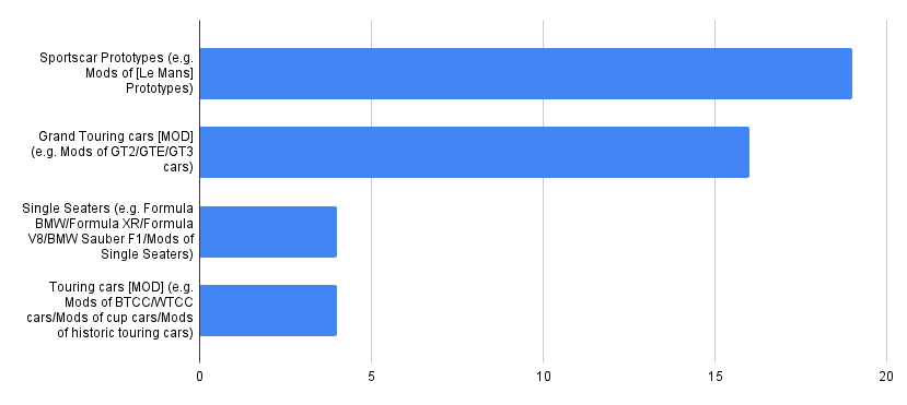 EDIT: The results from the free text show intested into modded GT cars as well as Sportscar prototypes such as LMP cars.