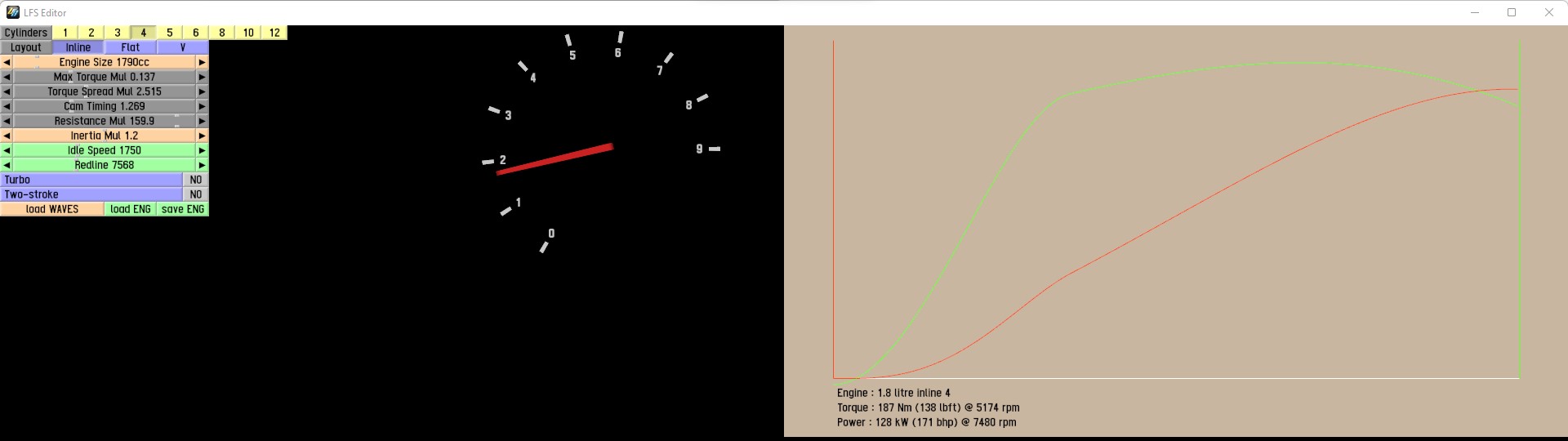 4 - that's one tricky subject, sound in general is very setup dependent, for me personally I wanted to stay as far as possible from "racy" or aggressive engine sound, since I can't really control how it sounds at higher rpm, unless you go full bang with it and make it sound like a race car, I mean it's hard for me to give nuances to the engine sound with the actual lfs sound engine (eg: quieter at lower rpm, screamy at higher rpm).