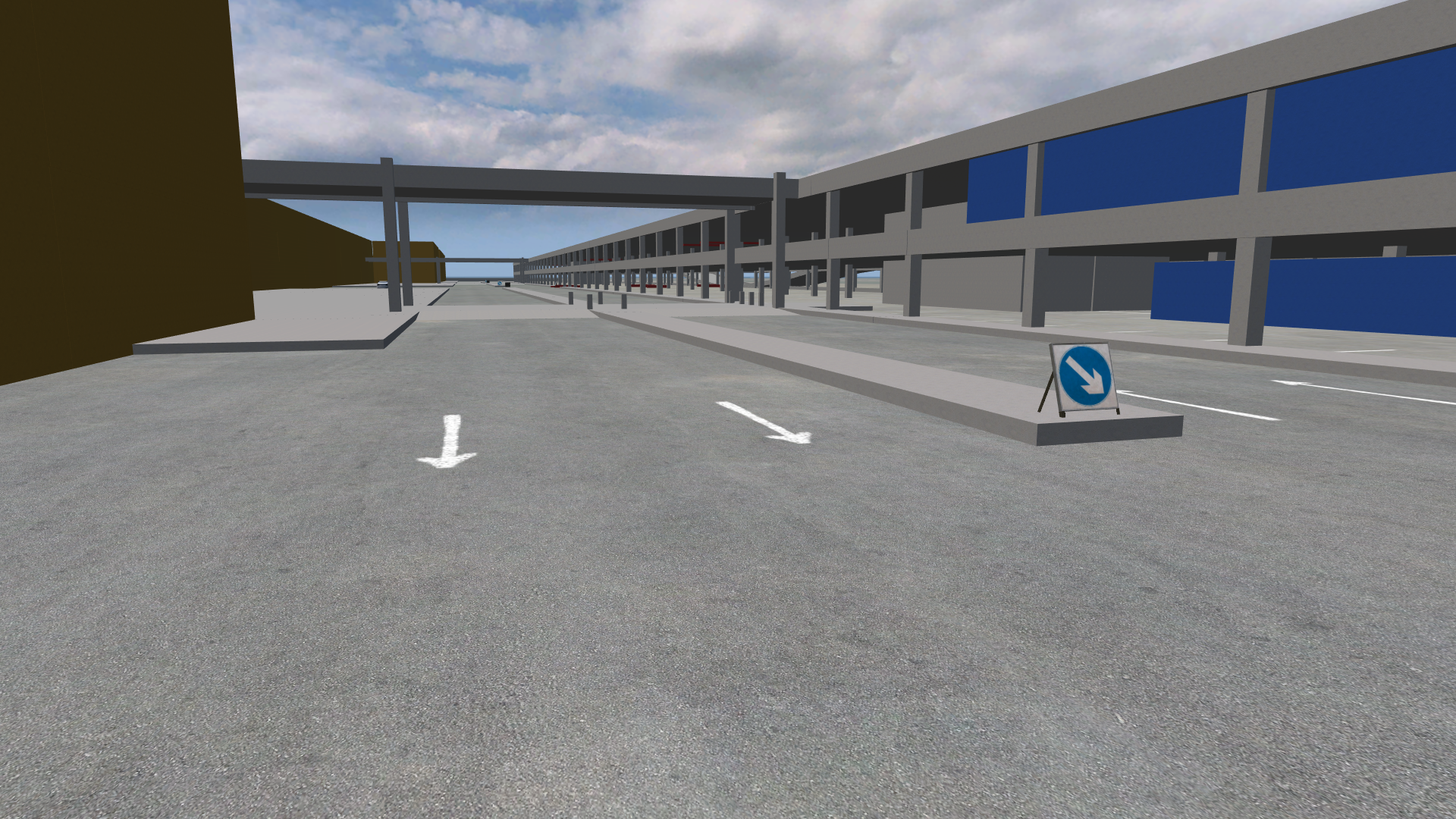 Hello, this is my firt layout for the public. This map is a real life location from Budapest, Hungary and it contains the parking garage area of a well-known mall. The sizes are accurate and measured, however I simplified the design to not take up too much objects and be enjoyable even in case of drifting. There is not a pre-set circle or track here, I'll let you build it up. It's just a base. I'm planning a second version with more roads available from this specific area. I'm open for uploaded modifications and added tracks on this layout in responses.