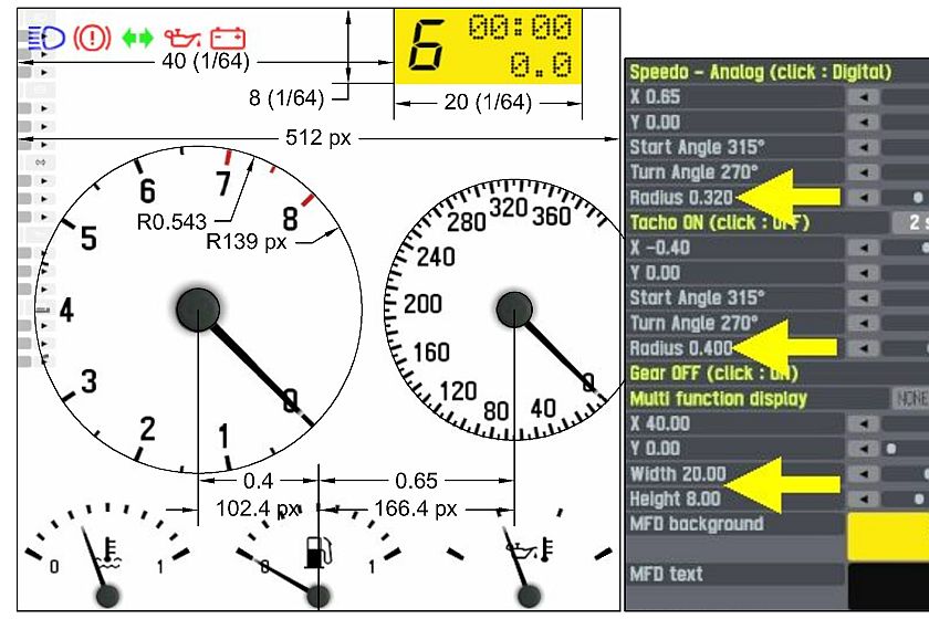 But radius of speedo and tacho does not correspond to fractions nor pixels.