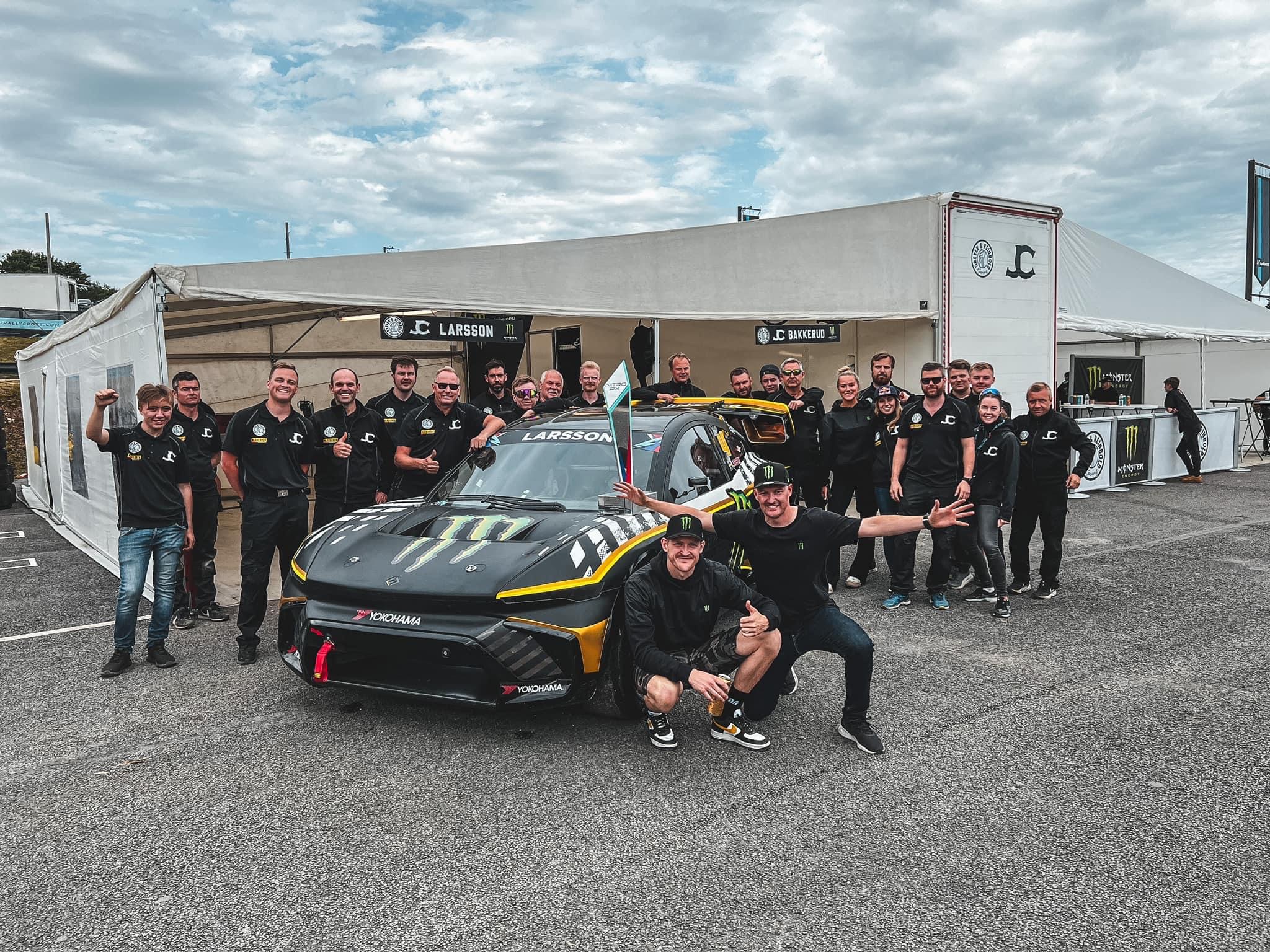Robin Larsson won the first round of NitroRX yesterday in Lydden Hill, with P2 for his teammate, photo of teampicture included
