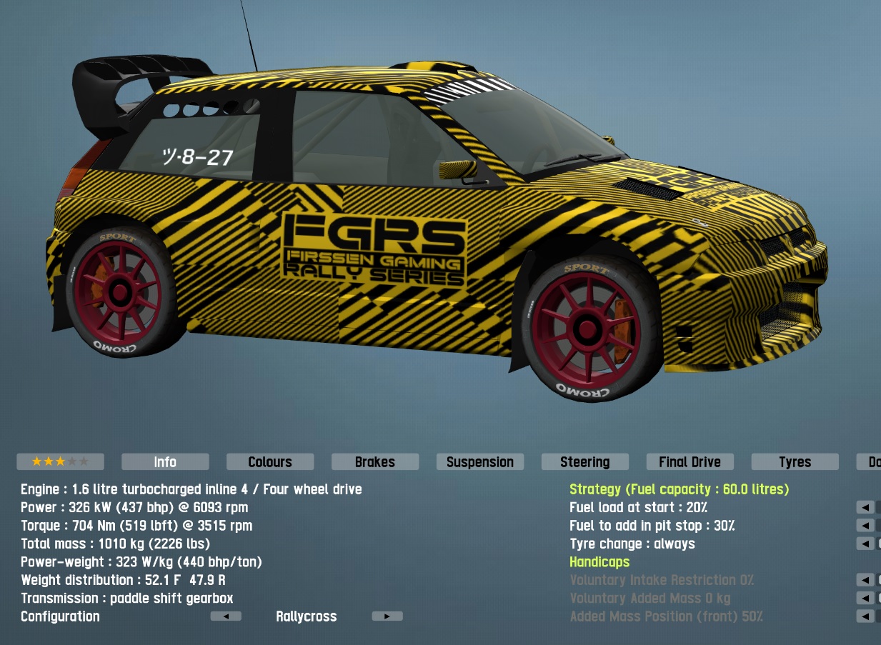 -Sadly XF GTi Rally is build for rally and not rallycross, if the author makes an RX version of the same performance as the Schancke T16, this could be possible.