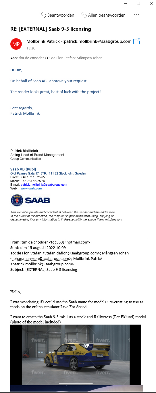 As a bonus gift, i'll release the info here that i've been given a license to use name logo and model name for the Saab 9-3 Mk. 1 by Saab AB. Mod is beingdeveloped behind the scenes and more info will come soon.