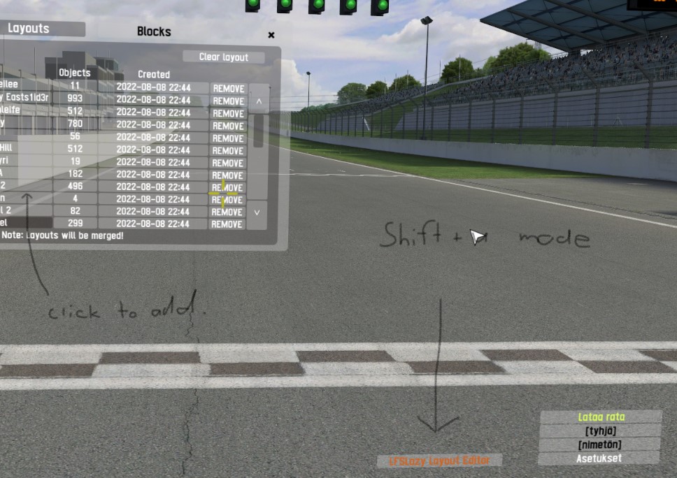 Edit: I also added shift+u mode, where LFSLazy opens up a list where I can just click to load layout into the track environment. It's one of the most useful tools as well.