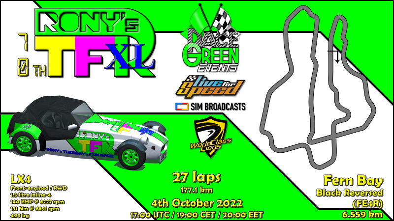 RTFR XL has kinda stabilized in terms of attendance - the last 3 races has 22-23 participants,which is few above all time average value. Combination of tricky lightweight road legal racing machine LX4 and Fern Bay's longest configuration was challenging already by default,racing in small packs increased the intensity of the race as seen on broadcast,while drivers alone had distant time-trial like competition with either cars ahead or behind.
