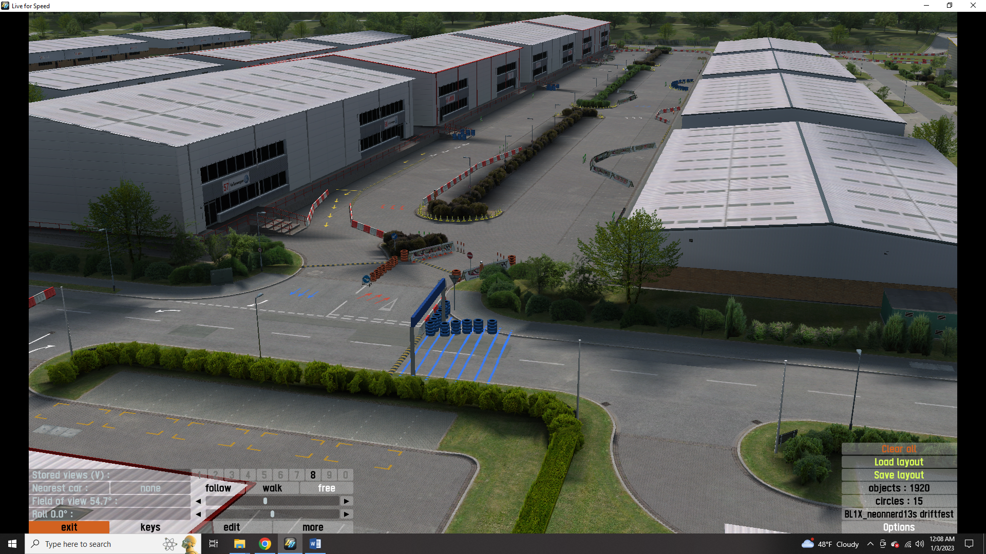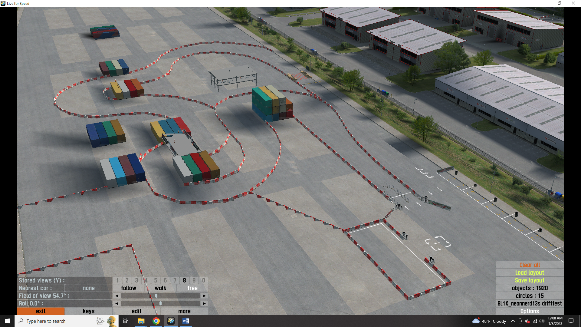 this is my drift layout. neonnerd13s drift fest. there are 5 tracks as well as donut garage and the burnyard from the hoonigan youtube channel. all the tracks are color coded with colored arrows directing you to each one. red track(fd style) is on the front straight. yellow track(touge style) is in the parking lot. white tracks(2 tandem) are in the container yard. white A is tighter and slower. white B is fast and features a jump drift. blue track(track day style) is in industrial. to reach it go through container yard. both hoonigan locations are also in the container yard. all tracks have pit boxes to save you from a drive when you need tires. i plan to add more in the future but for now i hope you enjoy.