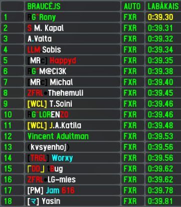 Previous winners : RGˆRony (2022), S1DUS*R.Kardol (2021), Trespasser (2020), LLM.Sobis (2019), B2マ FasT (2018), MTDZX-UM21 (2017), nsys|MareX (2016), RGˆM.Velikov (2015), 22 S.Jurvansuu (2014), S M.Kapal (2013), spdoReno (2012)