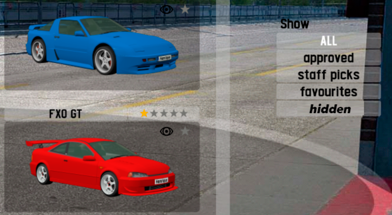 Special category for Drift cars could be also made available. We have objects, FSAE, F1, GT etc., so filtering Drift could make it easier for both sides. Drifters could easily find drift mods, while others, who are not interested, could filter them out.