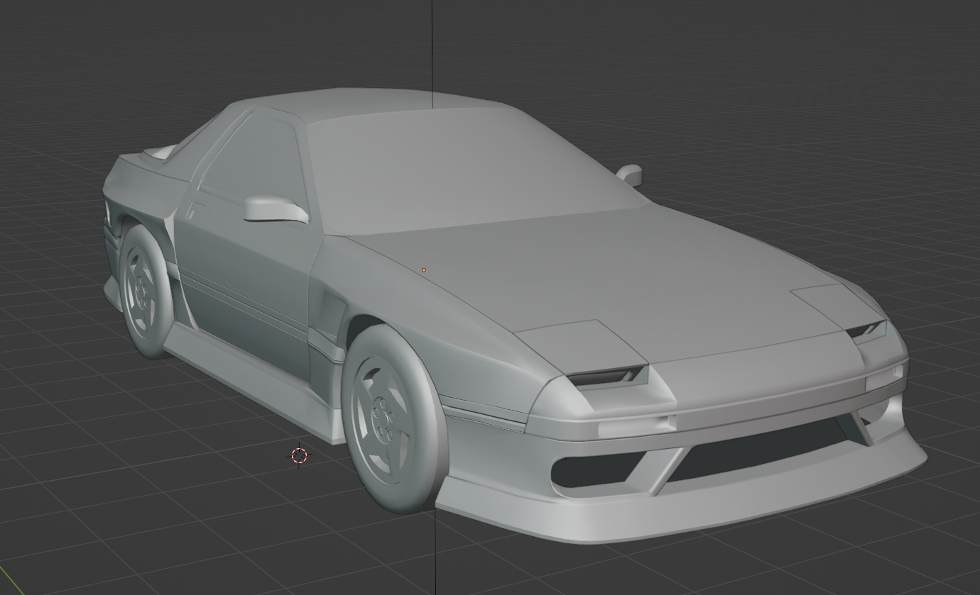 Competition starts in May, and the car should be ready and tested before that, so I do not have so much time to model a mod from scratch and I took the help of Rubie, and thanx to him I could use DORITO-FC7 D mod as a base for creating my FC3S mod. Now I just had time to make in the blender exactly the same widebody as the real one that will be used in the competition. But the most important thing is the physics and the suspension.