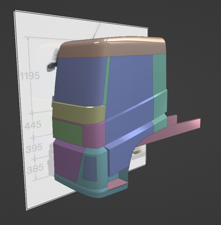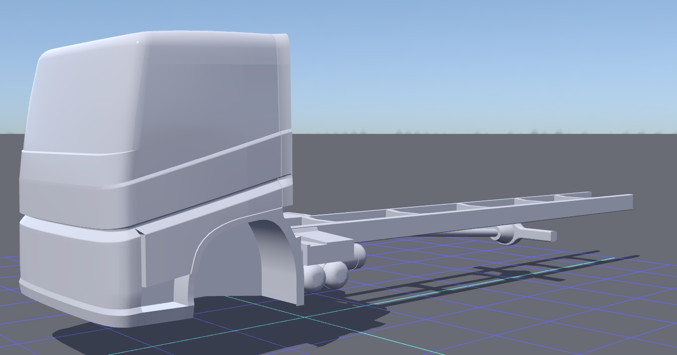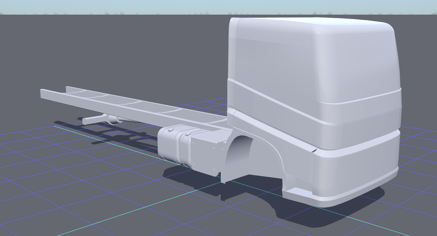 Previewing with a 4m total height (probably will be reduced to +-3.5m high). Also started to populate the chassis, today with a primitive exhaust box / dpf. Attached images