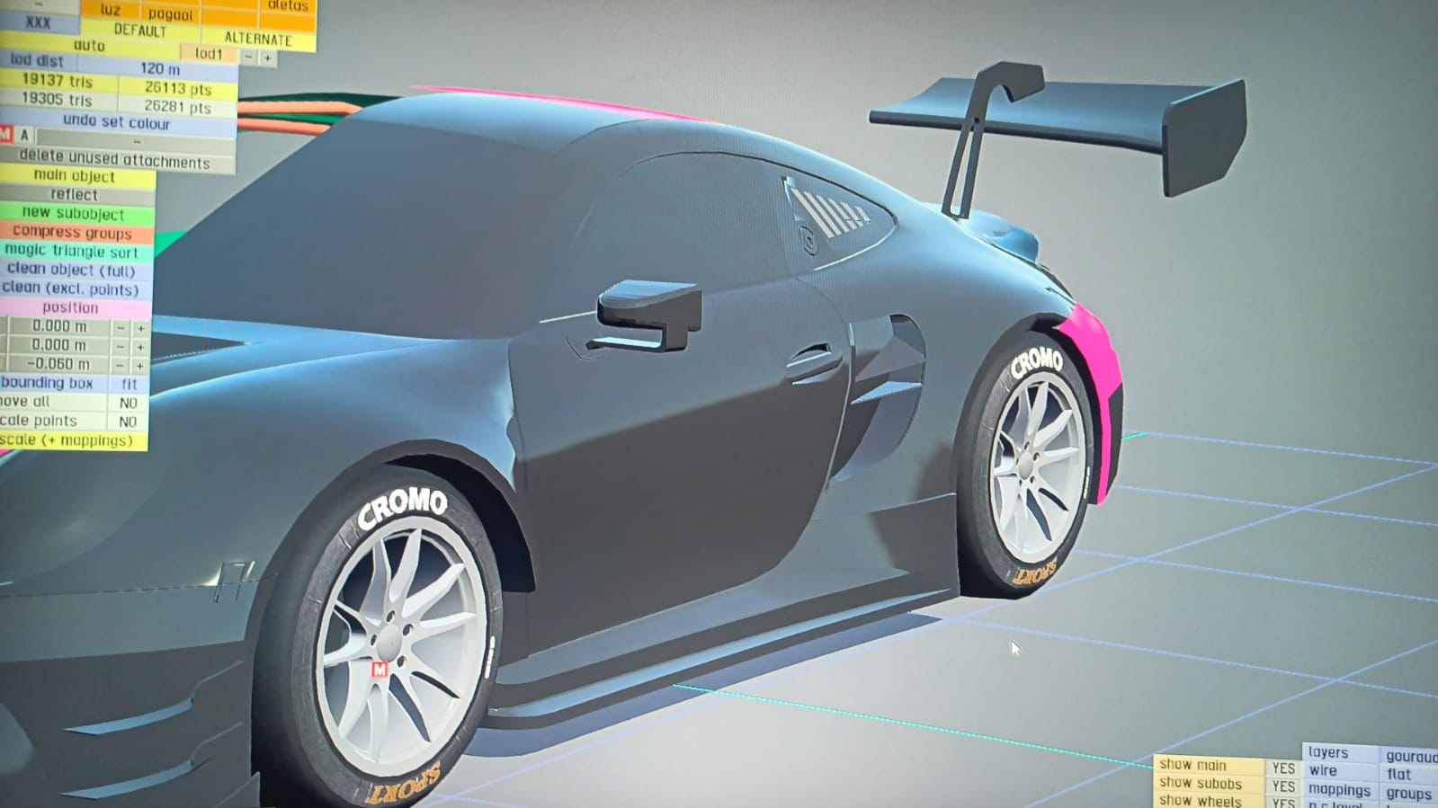 25/11/2022: I've contacted Reitax (instagram.com/reitaxac) to start working into an existing 991 gt3 r model (https://sketchfab.com/3d-models/porsche-911-gt3-r-2019-bd46472ba1244653810e4e03f219af1a). Main idea was to build the rear lights with front-rear bumpers and spoiler, then starting working on LFS editor for the rest of the things.