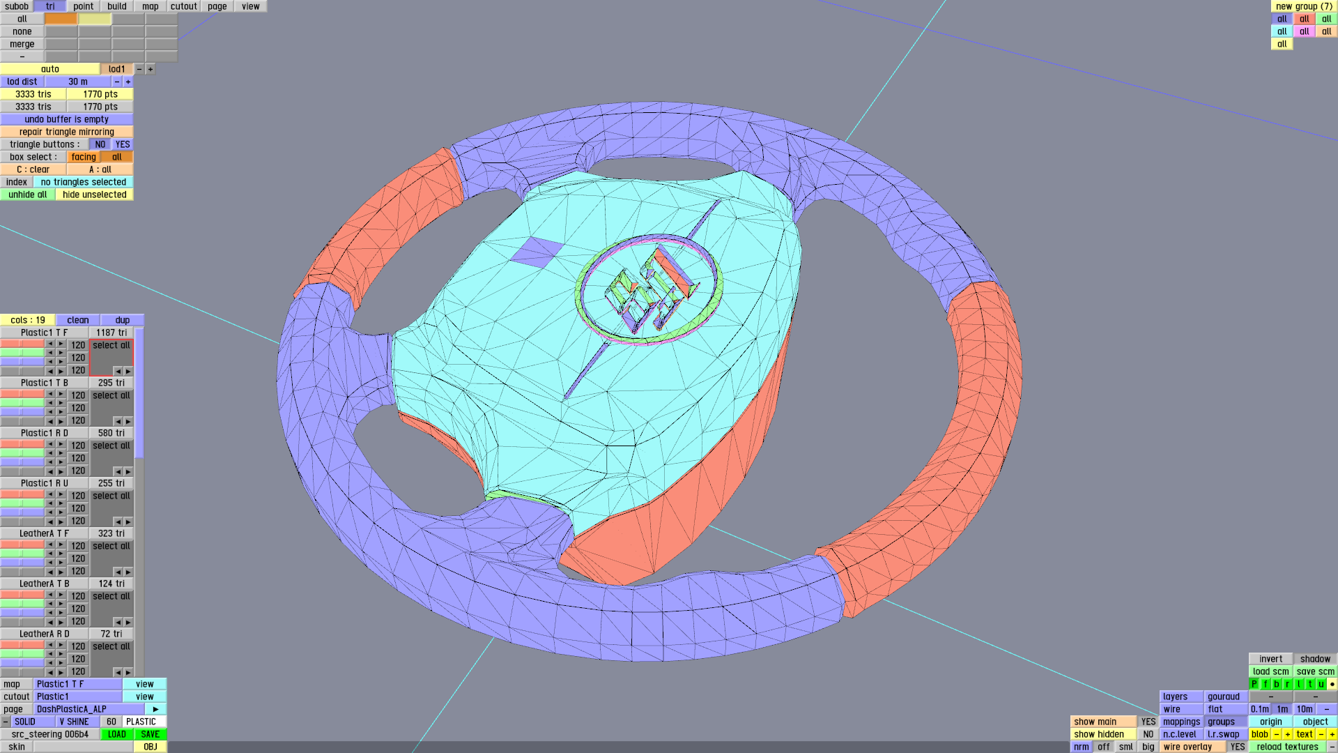 Decided to make my self the wheel. Also steering wheels' and seats' (out of XR+RAC) bit.