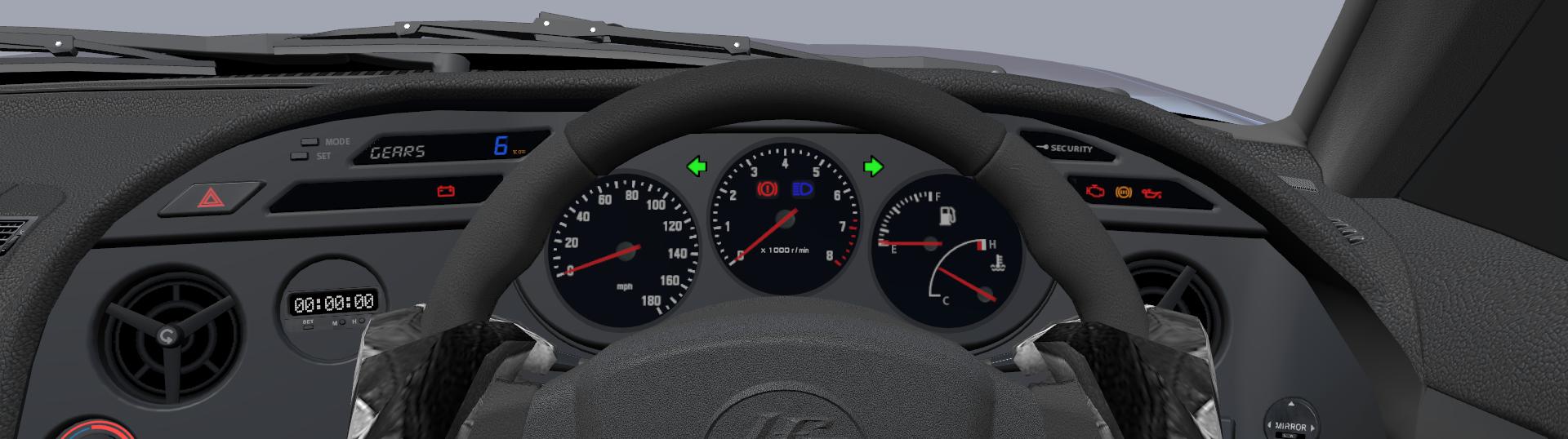And of course, this dash-backing thing. Tho only fuel/temp/turbo/clock gauges & MFD things. Tach & speedo stick to default just because of switchable unit. Irl ones also look just generique enough anyway (pre-facelift JDM). Obviously, things got mixed-up with the other (facelifted) gauge.