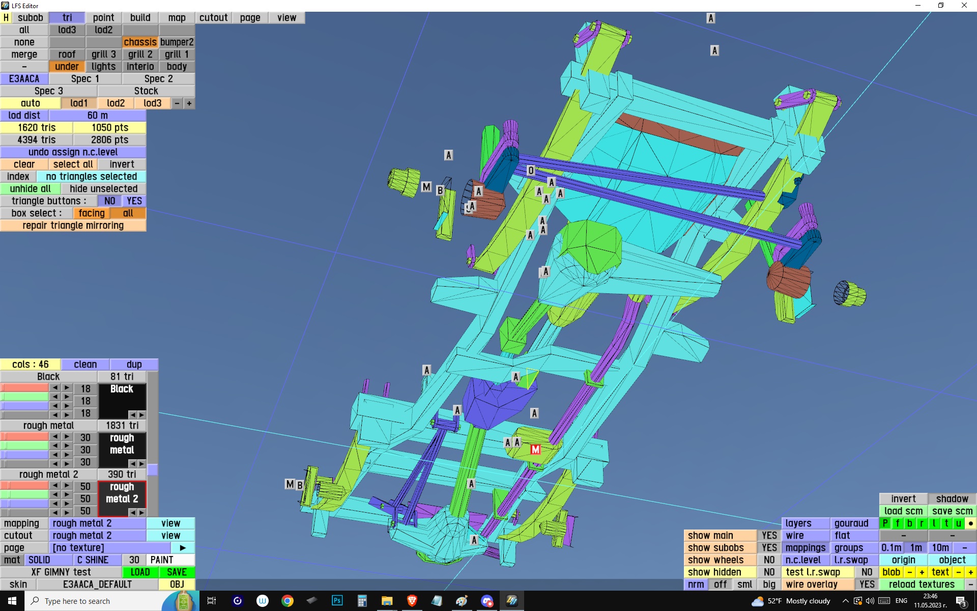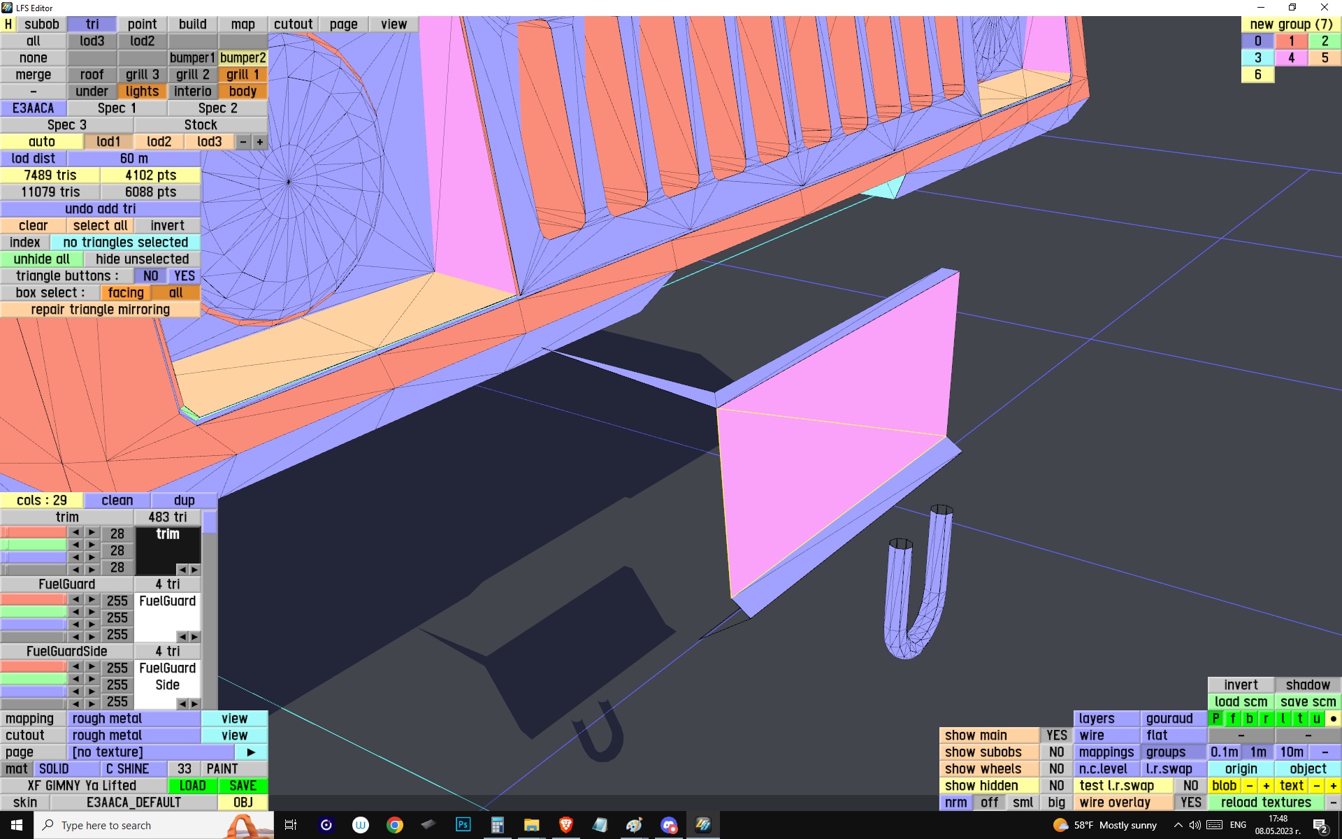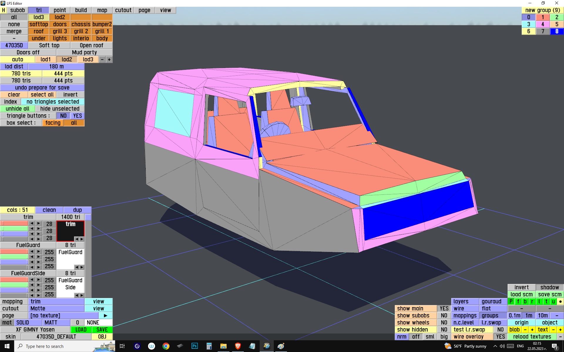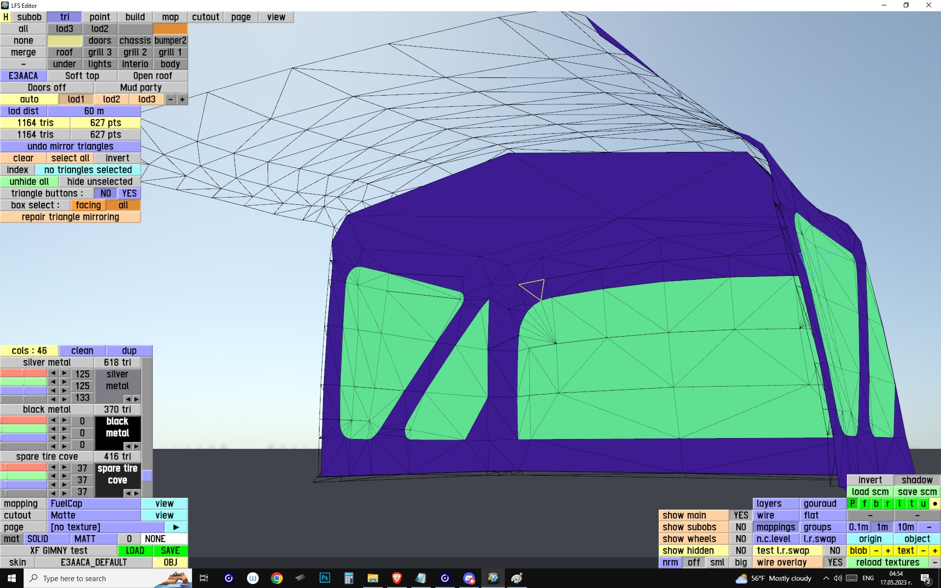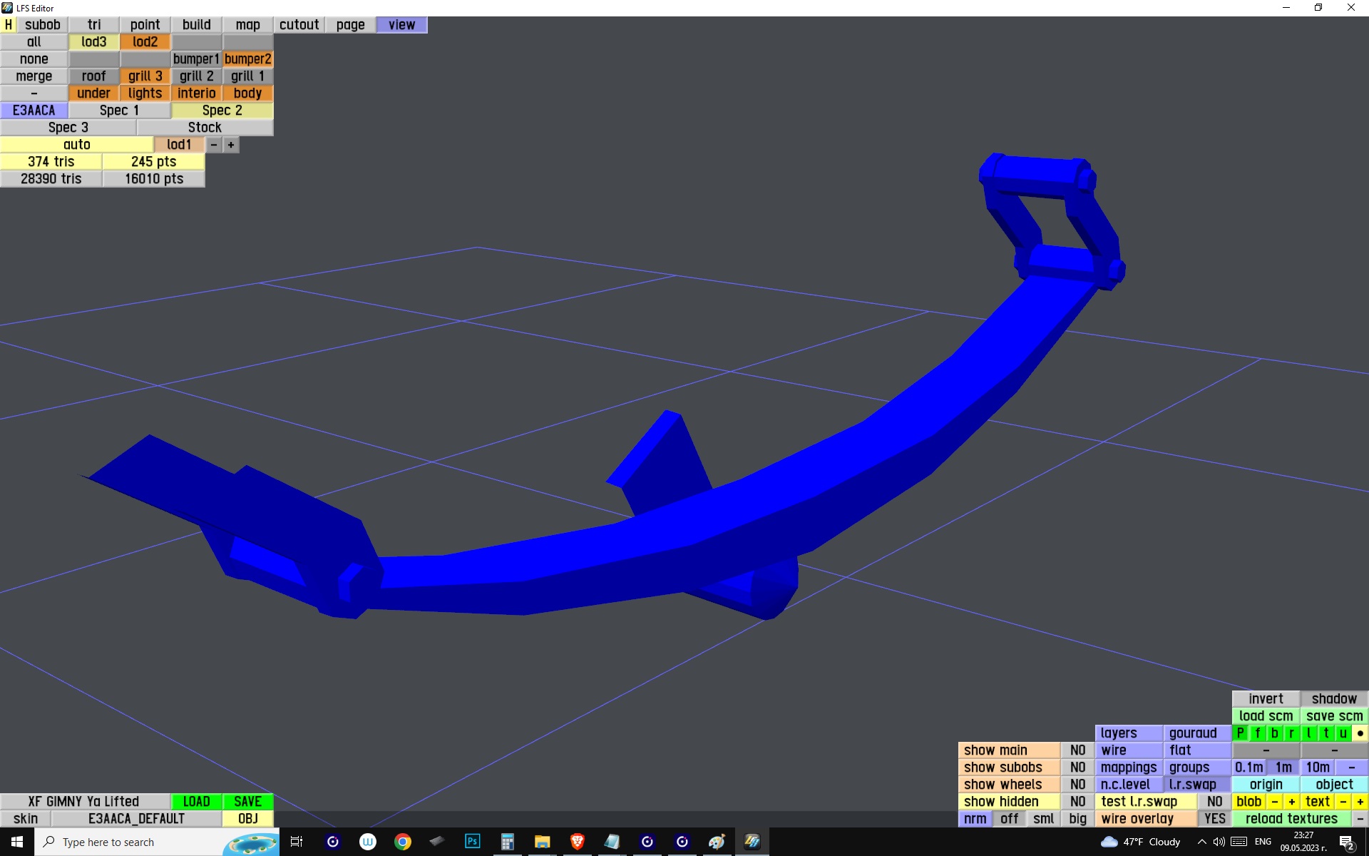 - New bumpers, sliders, winch, hooks, snorkel, roof rack, B pillar, soft top, inner and outside body roll cage, led bar, chassis mesh, exhaust, suspension mesh plus leaves attached as mudguards, spare tire mesh, skinnable spare tire vinyl cover, skinnable windshield banner