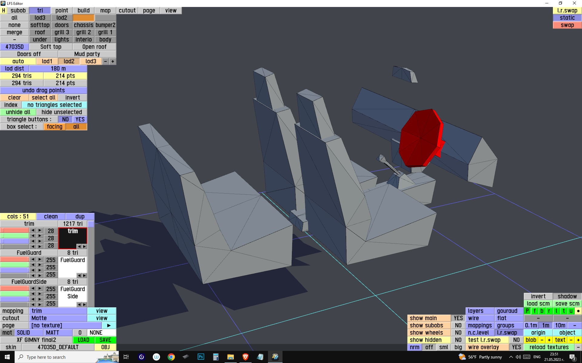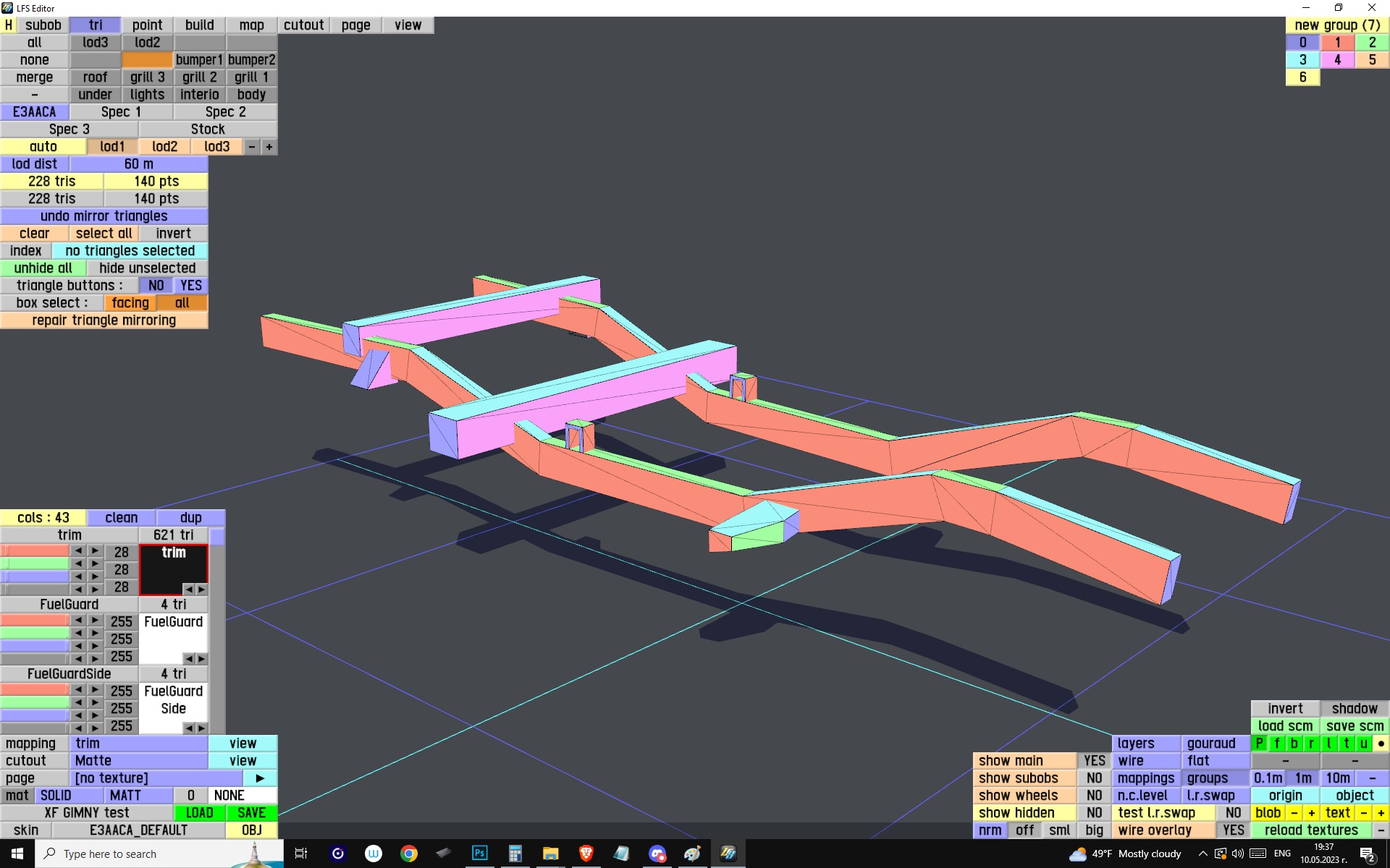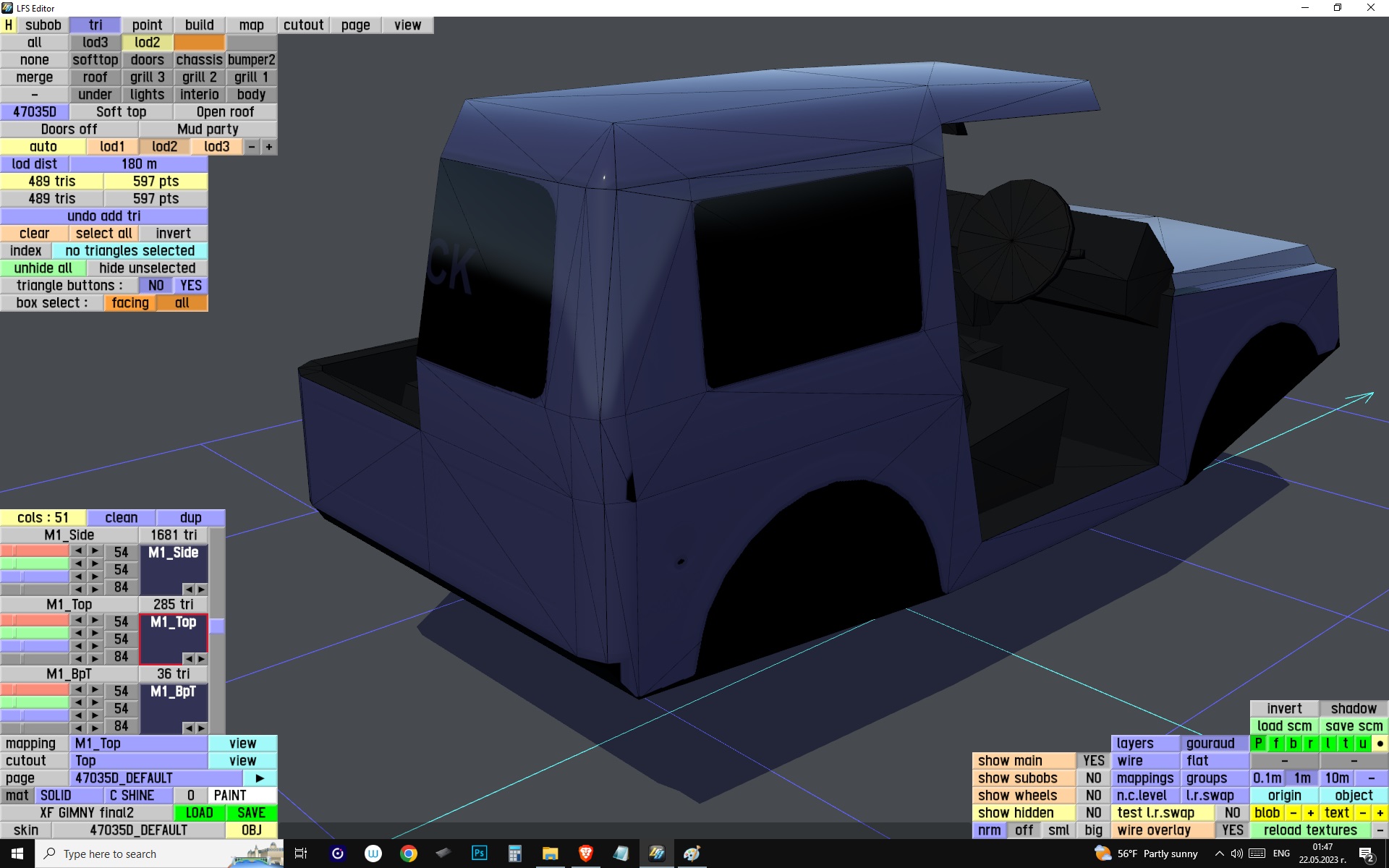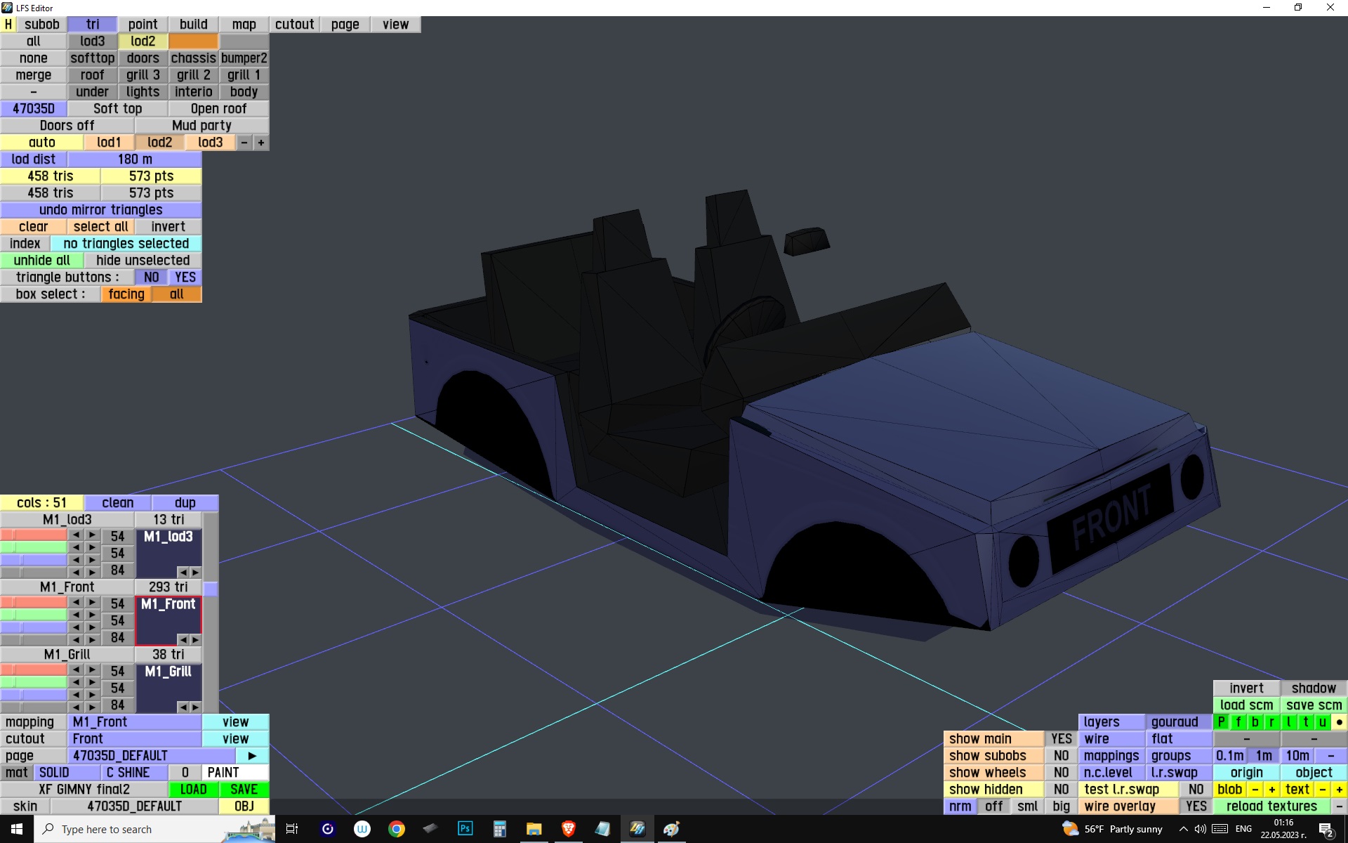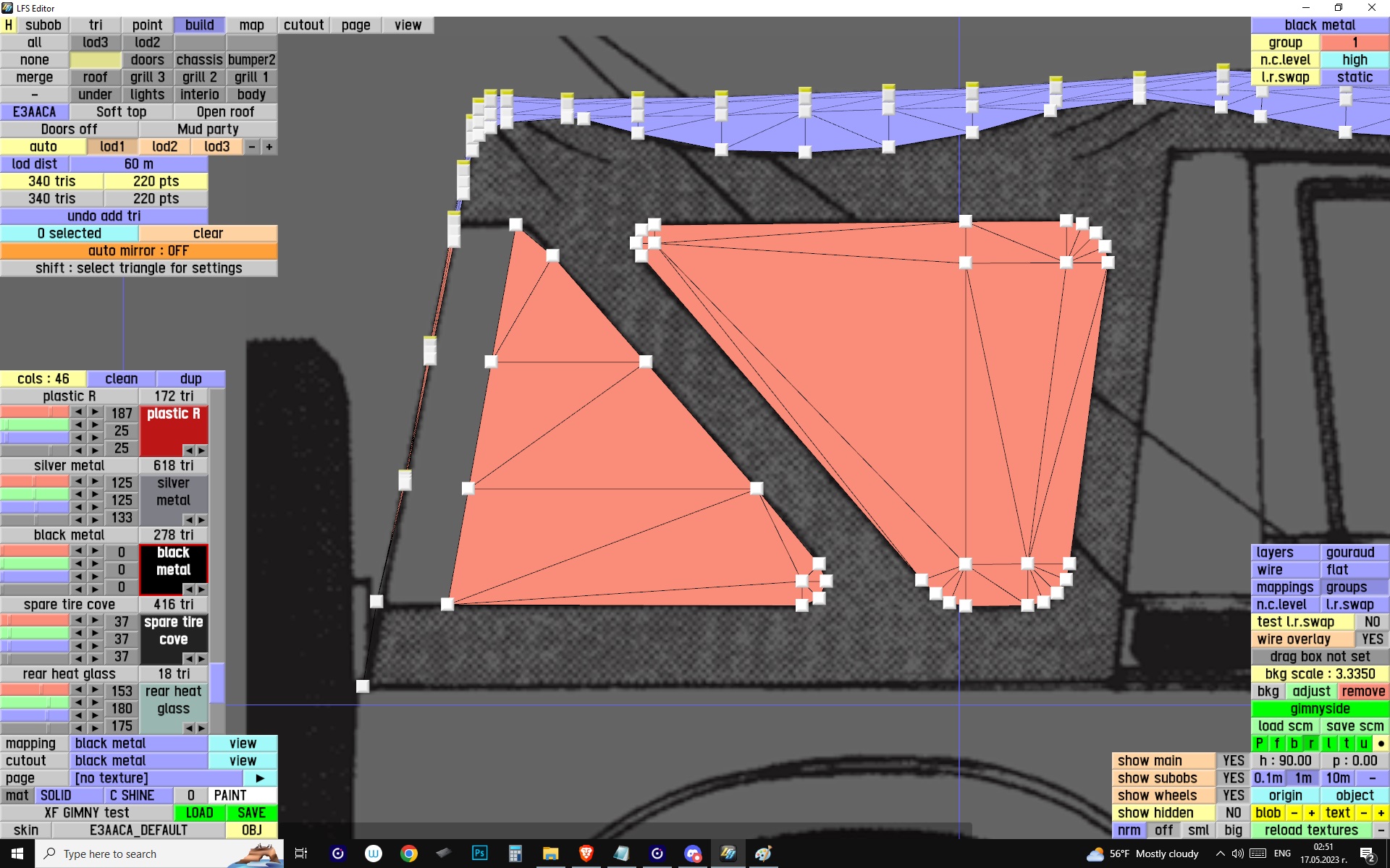 - New bumpers, sliders, winch, hooks, snorkel, roof rack, B pillar, soft top, inner and outside body roll cage, led bar, chassis mesh, exhaust, suspension mesh plus leaves attached as mudguards, spare tire mesh, skinnable spare tire vinyl cover, skinnable windshield banner