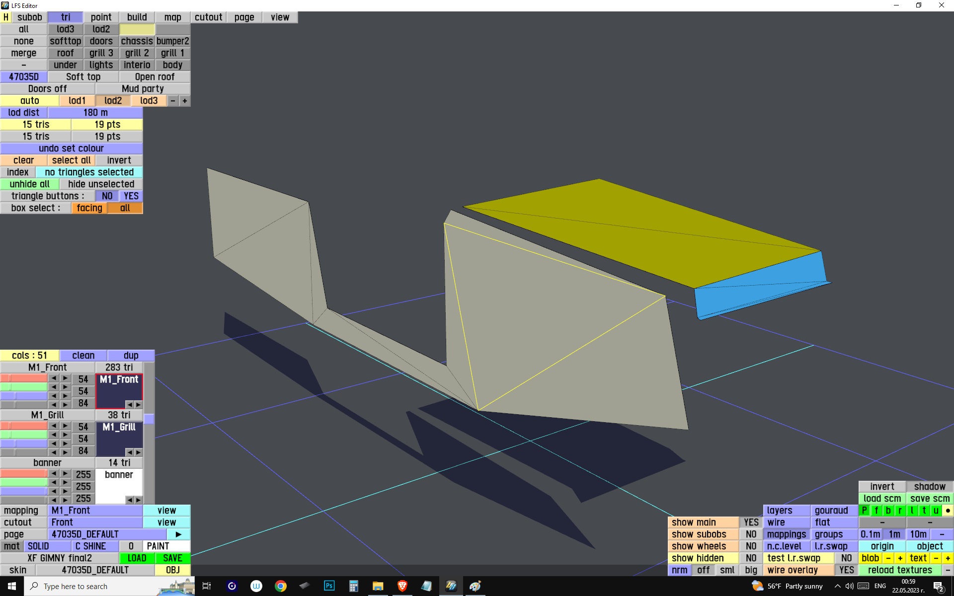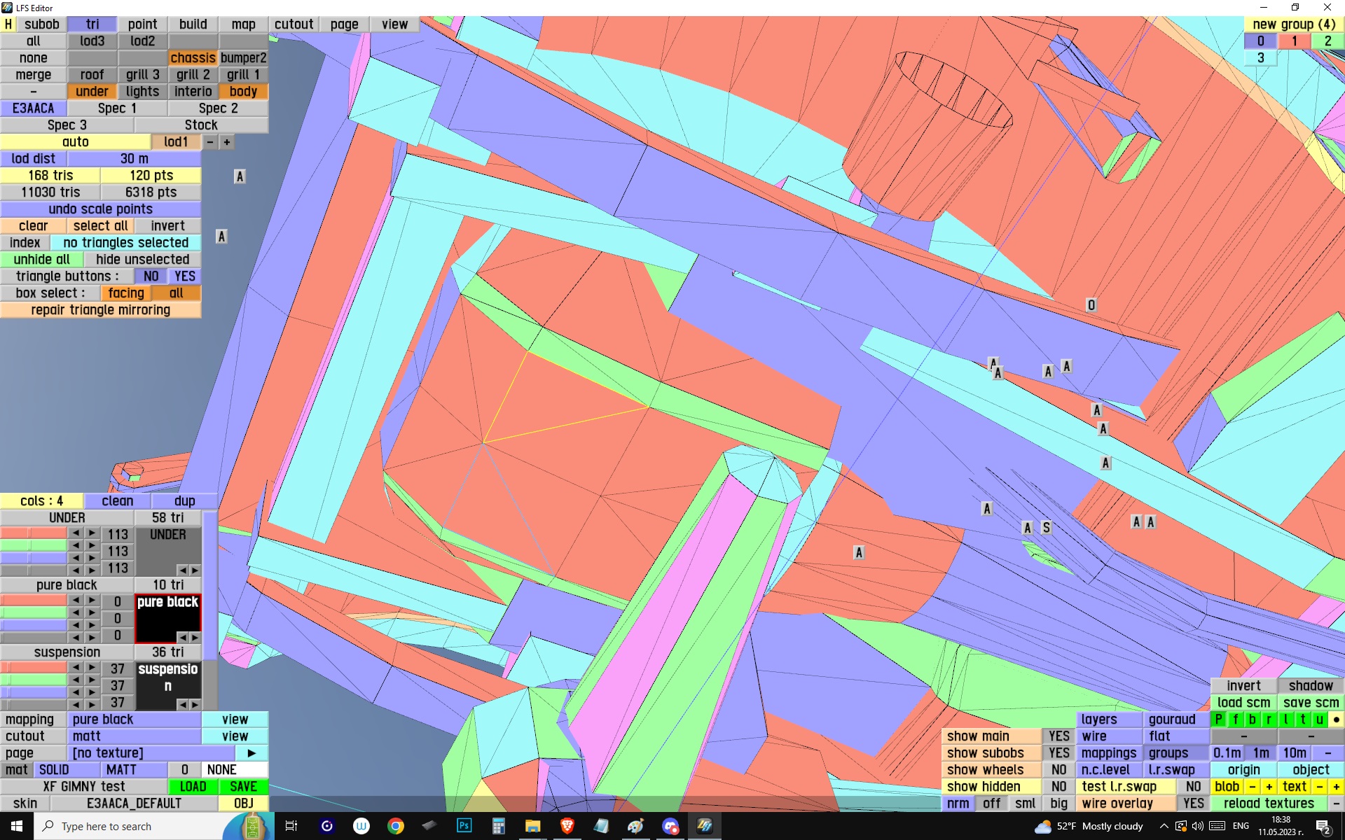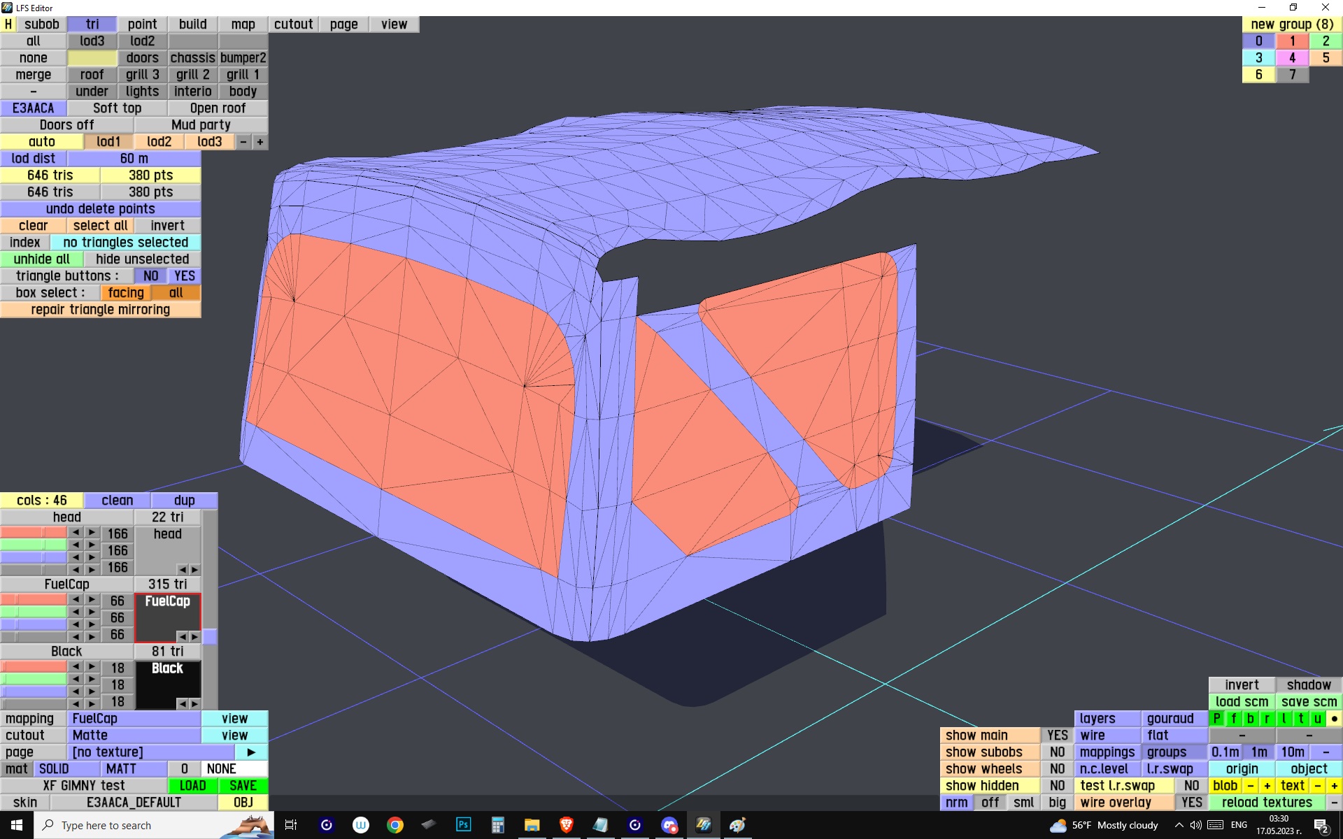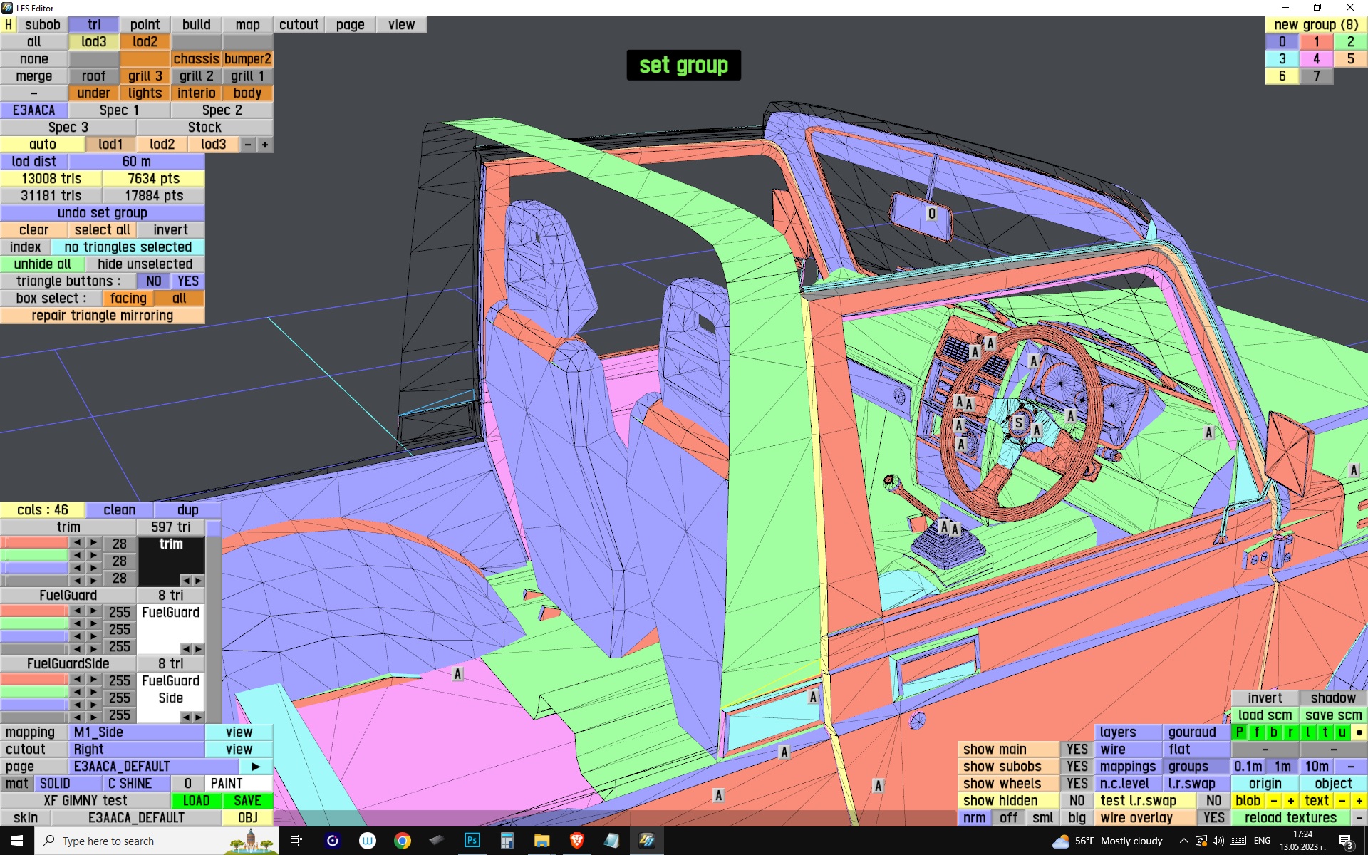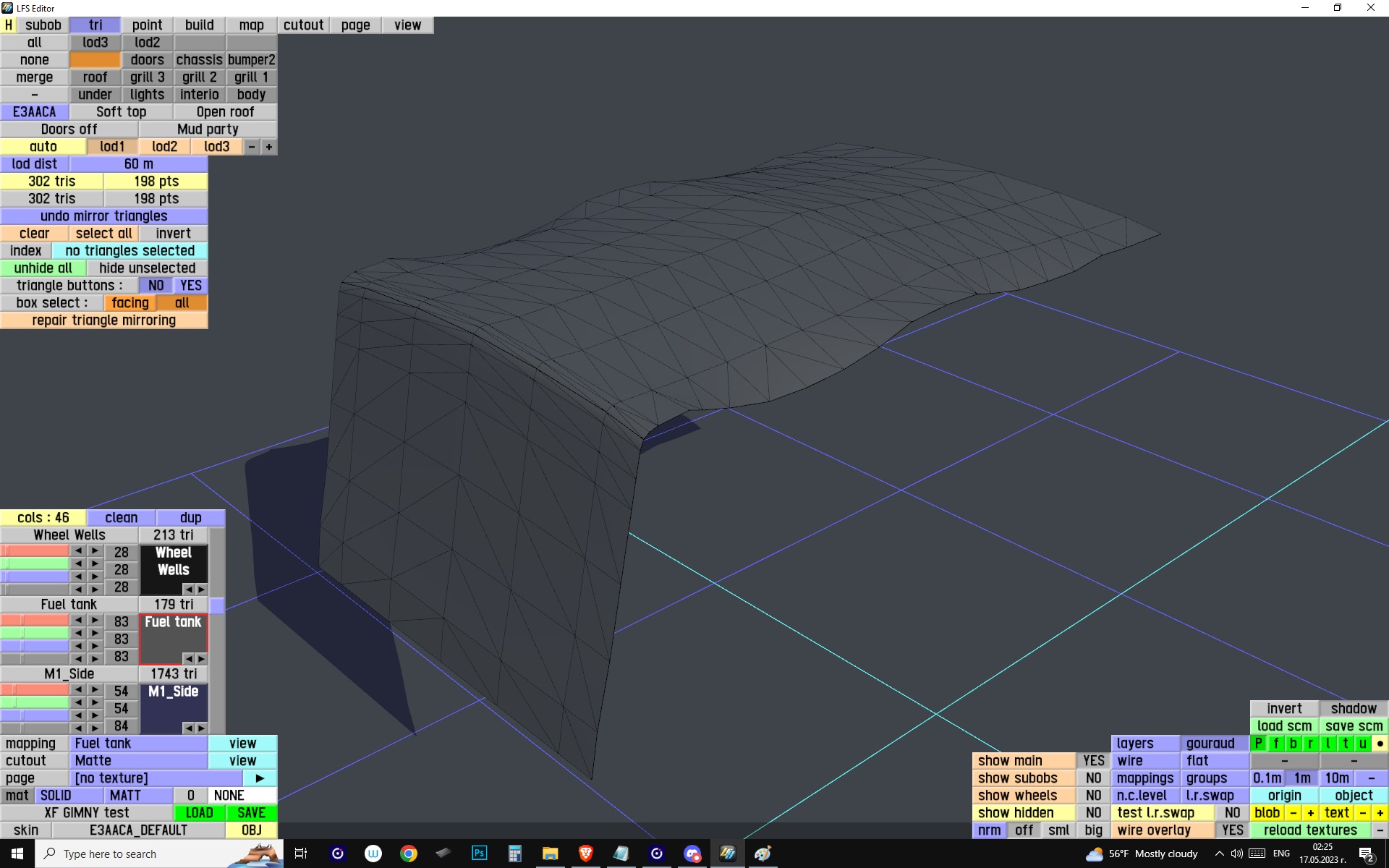 - New bumpers, sliders, winch, hooks, snorkel, roof rack, B pillar, soft top, inner and outside body roll cage, led bar, chassis mesh, exhaust, suspension mesh plus leaves attached as mudguards, spare tire mesh, skinnable spare tire vinyl cover, skinnable windshield banner