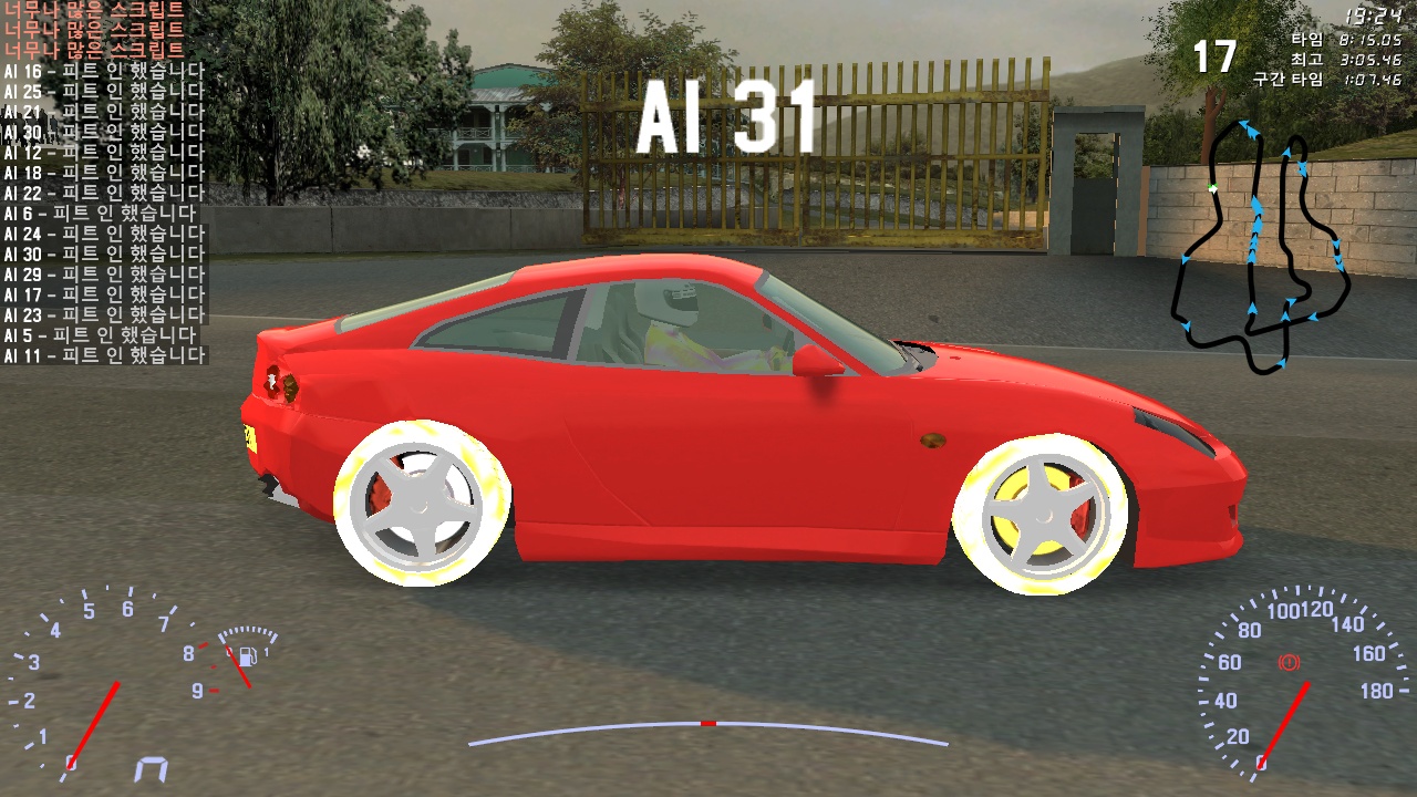 fz50 and uf gtr ai race out of fuel engine off, but tire and driver color was strange.