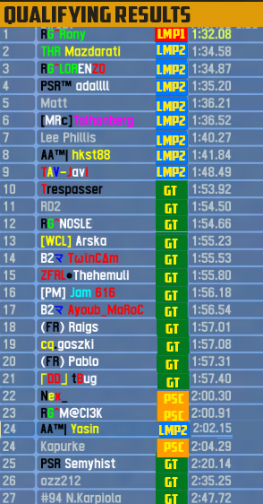 - Mid race join not allowed; you'll need to set a lap in quali to be able to race!