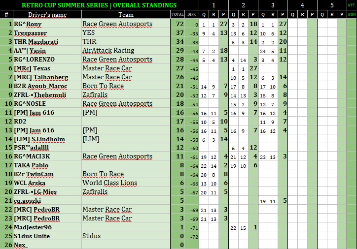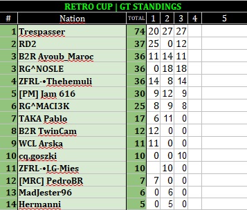 - GT's are led by Trespasser, with a good margin over Ayoub Maroc & RD2