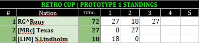 - RG^Rony leads the overall and P1 classification, ahead of [MRC]Texas & Lindholm.