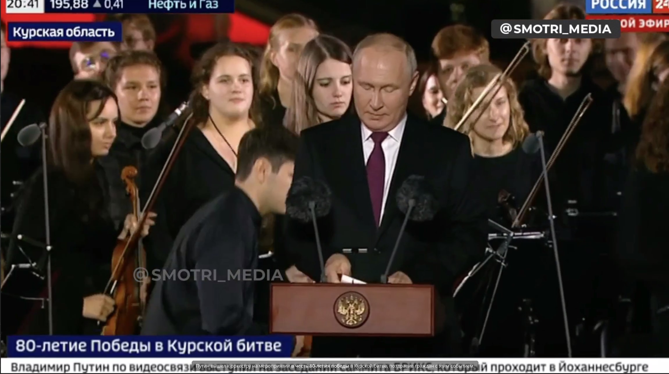It's funny that at that time Putin came out to the orchestra at an event in honor of the 80th anniversary of the victory in the Battle of Kursk, congratulating the citizens on this event.