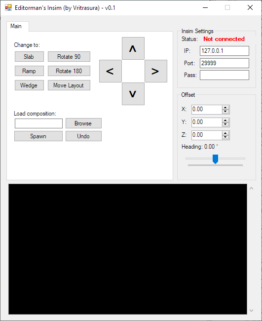 If you press o-key while no block selected, then LFS send the position under mouse cursor to my app and the offset X Y Z fields are updated. That way you can pre-click where you want to spawn the composition... If wrong, you just hit "Undo", click elsewhere and spawn again