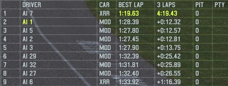 I found AIs are either easily crash into each other without braking applied or braking to a even slower state when following other cars and accelerate far behind out of the corner when drive through low speed corners in D42. In some case it more seems like a logic of line finding problem. Maybe have a try using a wider line to avoid?eg.Turn 4 and Turn 8 in WE1