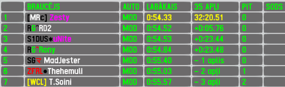 Zesty scored the 1st point of the season by taking pole position in 1st round,now in 3rd round he had the 2nd success - starting from 4th position the malaysian climbed up the field to make a pass for lead already in lap 8,that was the last time when he saw direct rival in front of him as he led the remaining 28 laps on the way to his 1st ever VERL race win,which is also his 1st podium finish in this league,but already 4th top5 finish. The winner of first two season rounds saw his streak ended in this race - RD2 finished 2nd,allthough just 5 seconds apart from winner,still scoring valuable points gain over competition. The 2-time VERL vice champion (including last season) Unite joined this season only in 3rd round,but did it by scoring his 2nd pole position in the series,his race however did not went as good as he imagined as due several mistakes he barely saved the 3rd place finish,which is already his 15th top5 finish in VERL.