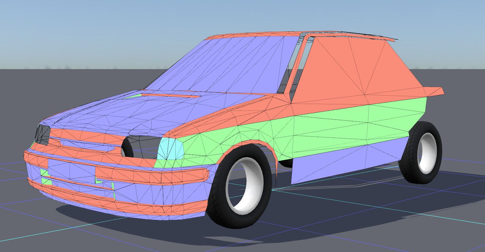 Progress: smoother door and mudguard shading. Added outer door-handles