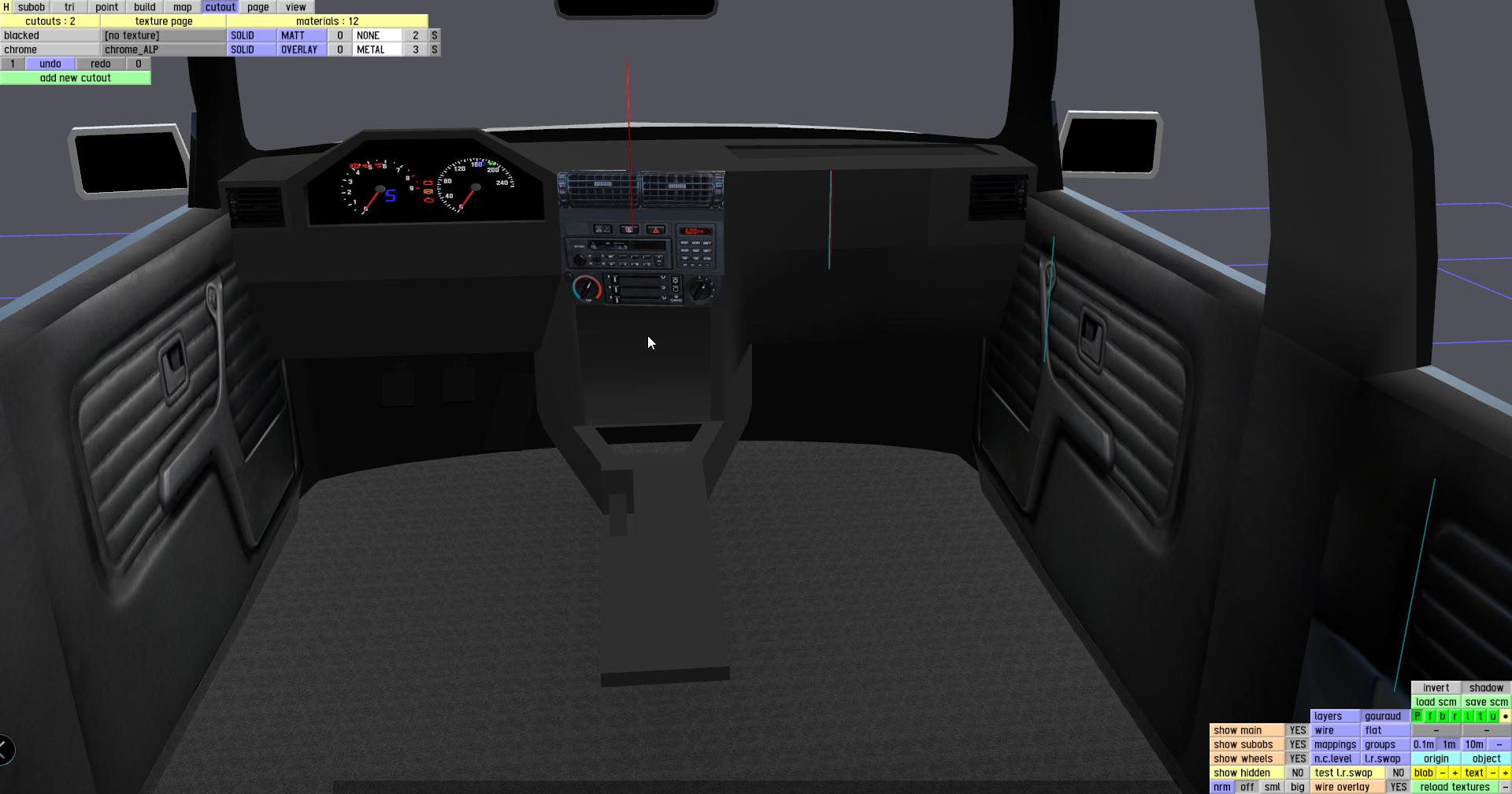 Dashboard, its a old/stock one from my already published e30 convertible ( which isnt finished too for public access Face -> palm ) Will work on a new/scratch dashboard later on with texture look no tris.