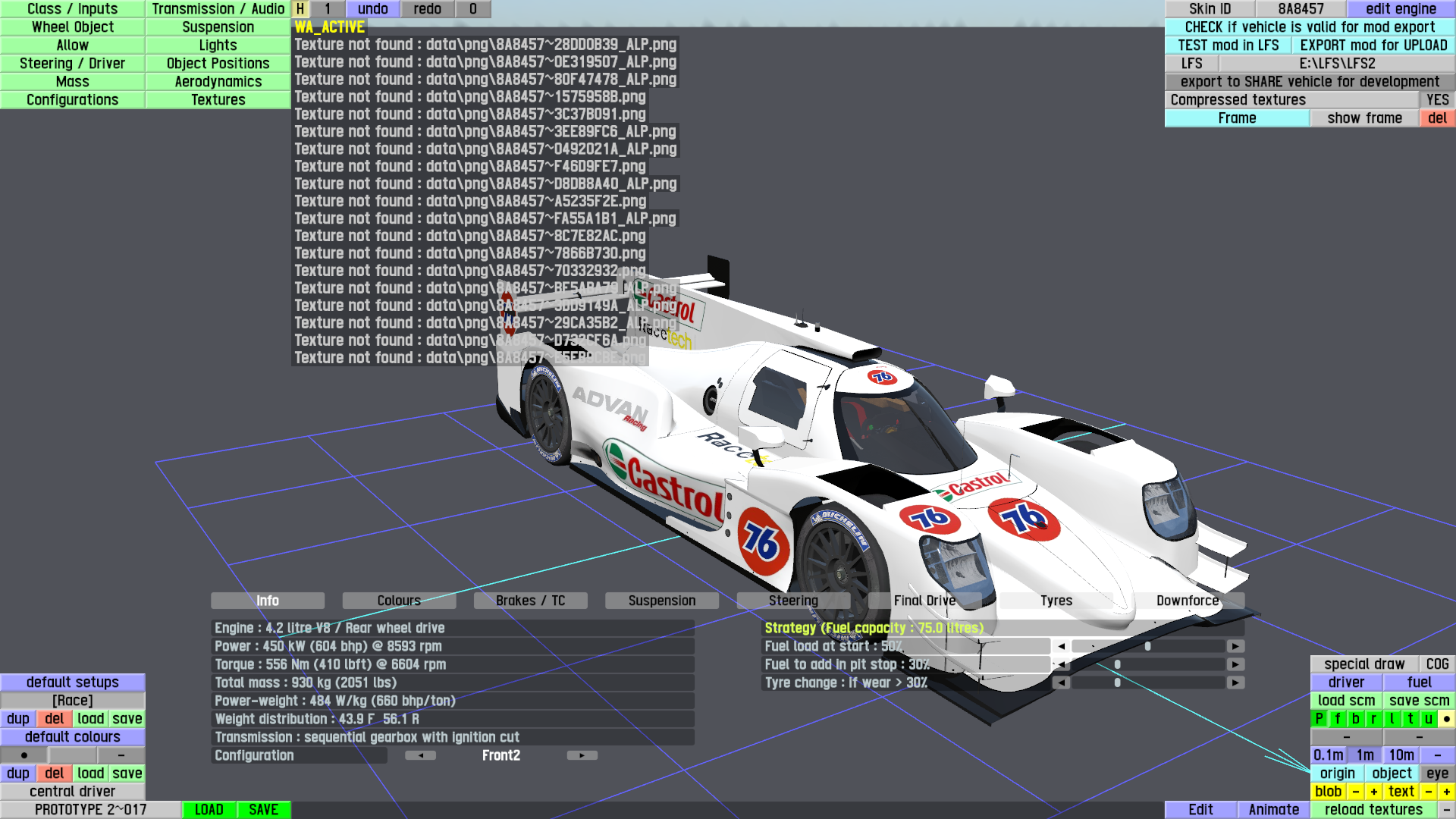 So, I was making my first skin for the mod PROTOTYPE2, so I copied the veh file from "LFS\mods\vechiles" and pasted it to the veh folder of the LFS editor. Everything was fine with creating the skin after watching some tutorials.Finally I had finished my skin and tried testing it from the editor but I got an error: "19 png textures not found". I went to the folder where I got the 'veh' file from and copied the 'dds' files and then pasted in the folder the editor was referring to (png folder), it didn't work...I then turned the 'dds' into 'png' but didn't work either...