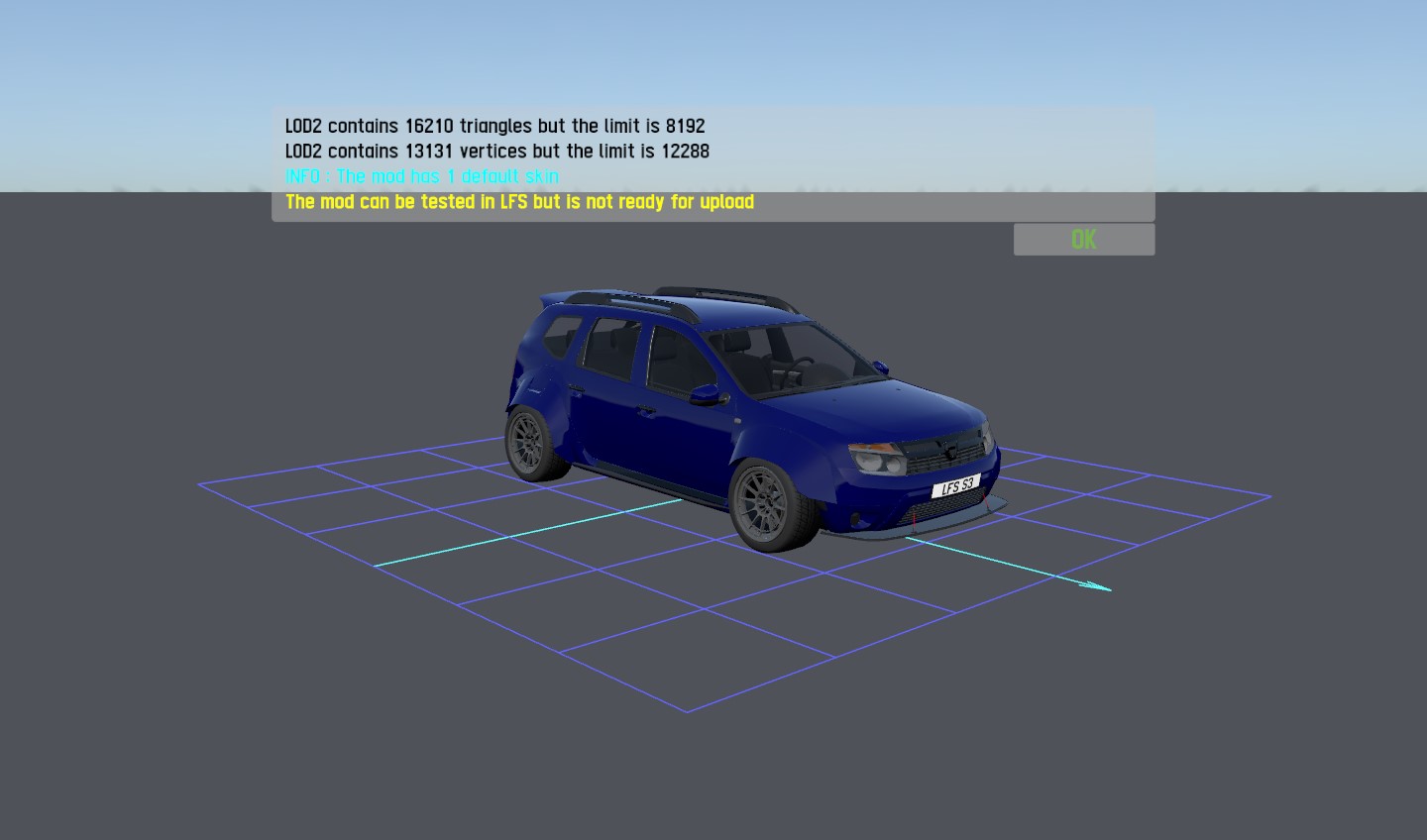 One day I´ve seen title about Dacia duster with Gtr r35nismo engine making around 850hp, so i though about making it in lfs. And because i am not that good at making my own model i was happy when i saw Quored´s mod and that he allowed derivates.
